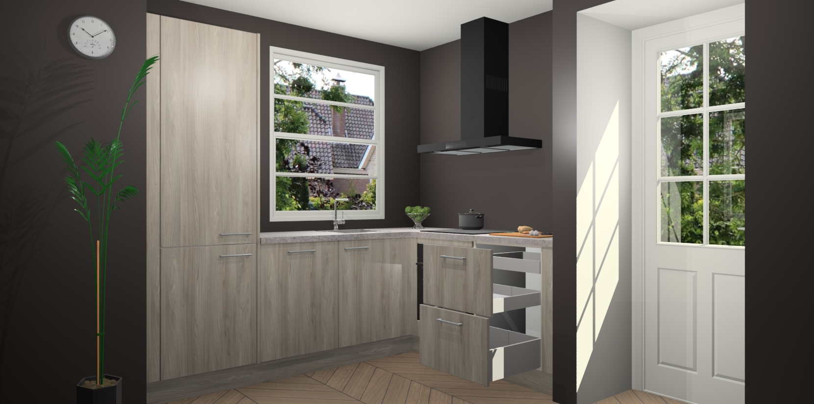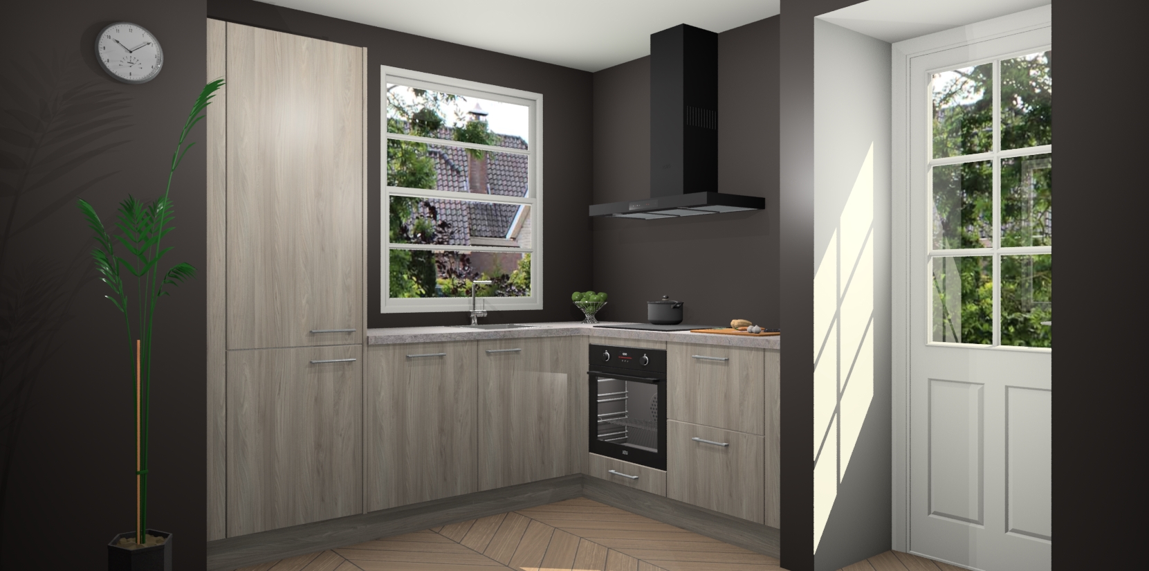 Wilt u een echte aanwinst voor uw keuken, maar bent u op zoek naar iets specialers dan de standaardkeukens? Kies dan voor de Olm keuken Harbin! Dit prachtige hoekkeukenontwerp geeft u alle ruimte om optimaal te genieten van heerlijk koken. Het uitmuntende afwerkingsniveau, de fraaie houtstructuur en de sfeervolle zwarte grepen maken van de Olm keuken Harbin de perfecte keuze voor zowel enthousiaste thuiskoks als design-minded interieurliefhebbers.