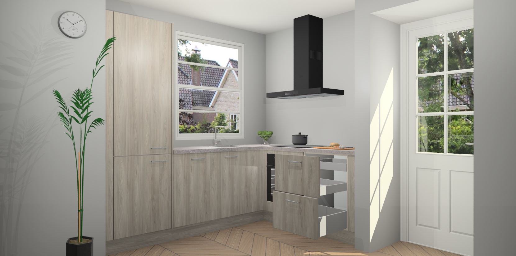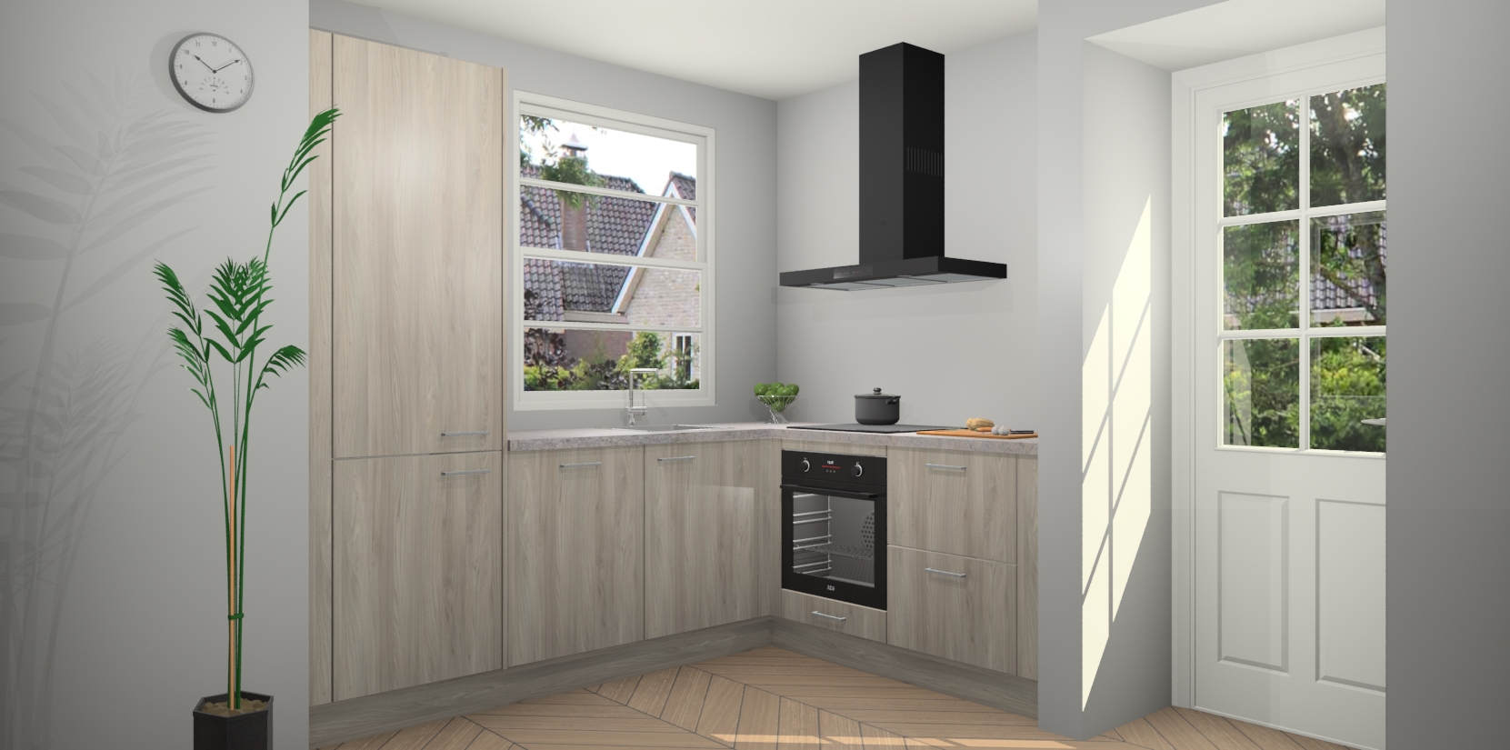 Wilt u een echte aanwinst voor uw keuken, maar bent u op zoek naar iets specialers dan de standaardkeukens? Kies dan voor de Olm keuken Harbin! Dit prachtige hoekkeukenontwerp geeft u alle ruimte om optimaal te genieten van heerlijk koken. Het uitmuntende afwerkingsniveau, de fraaie houtstructuur en de sfeervolle zwarte grepen maken van de Olm keuken Harbin de perfecte keuze voor zowel enthousiaste thuiskoks als design-minded interieurliefhebbers.