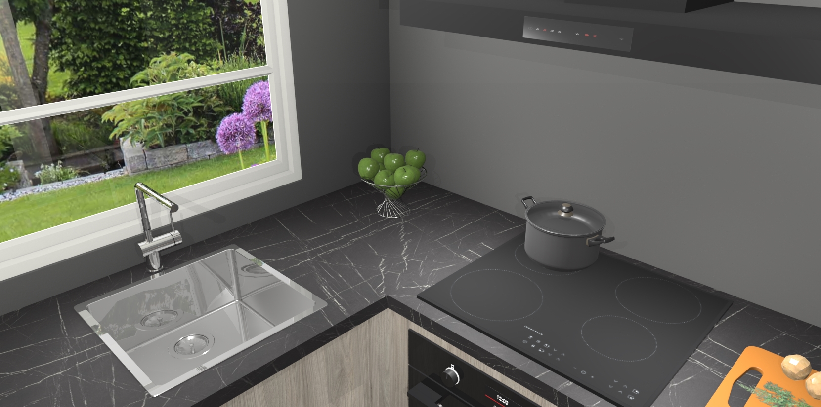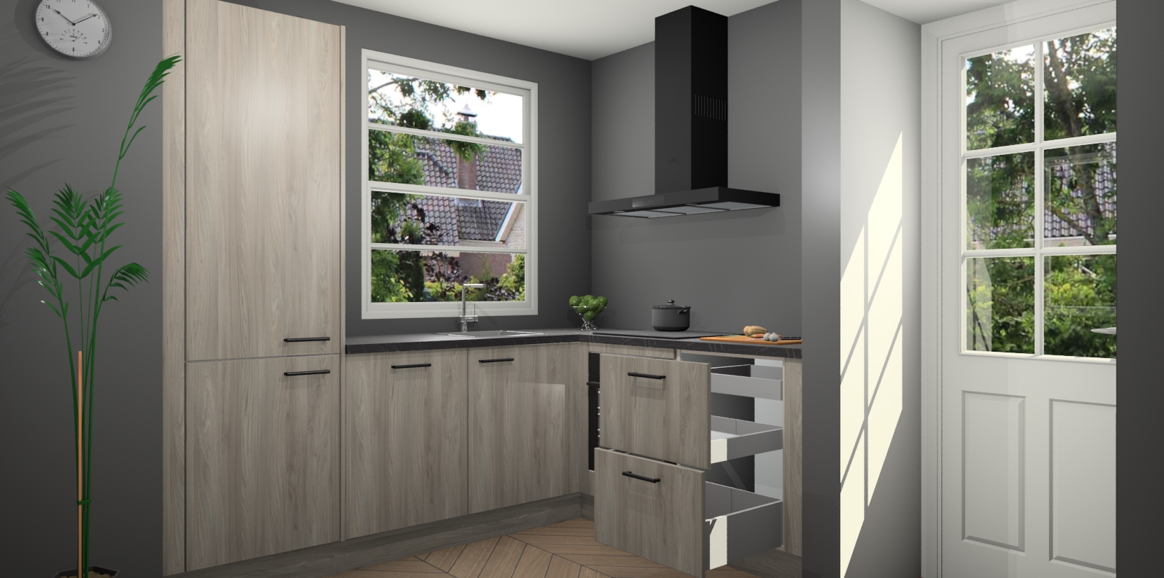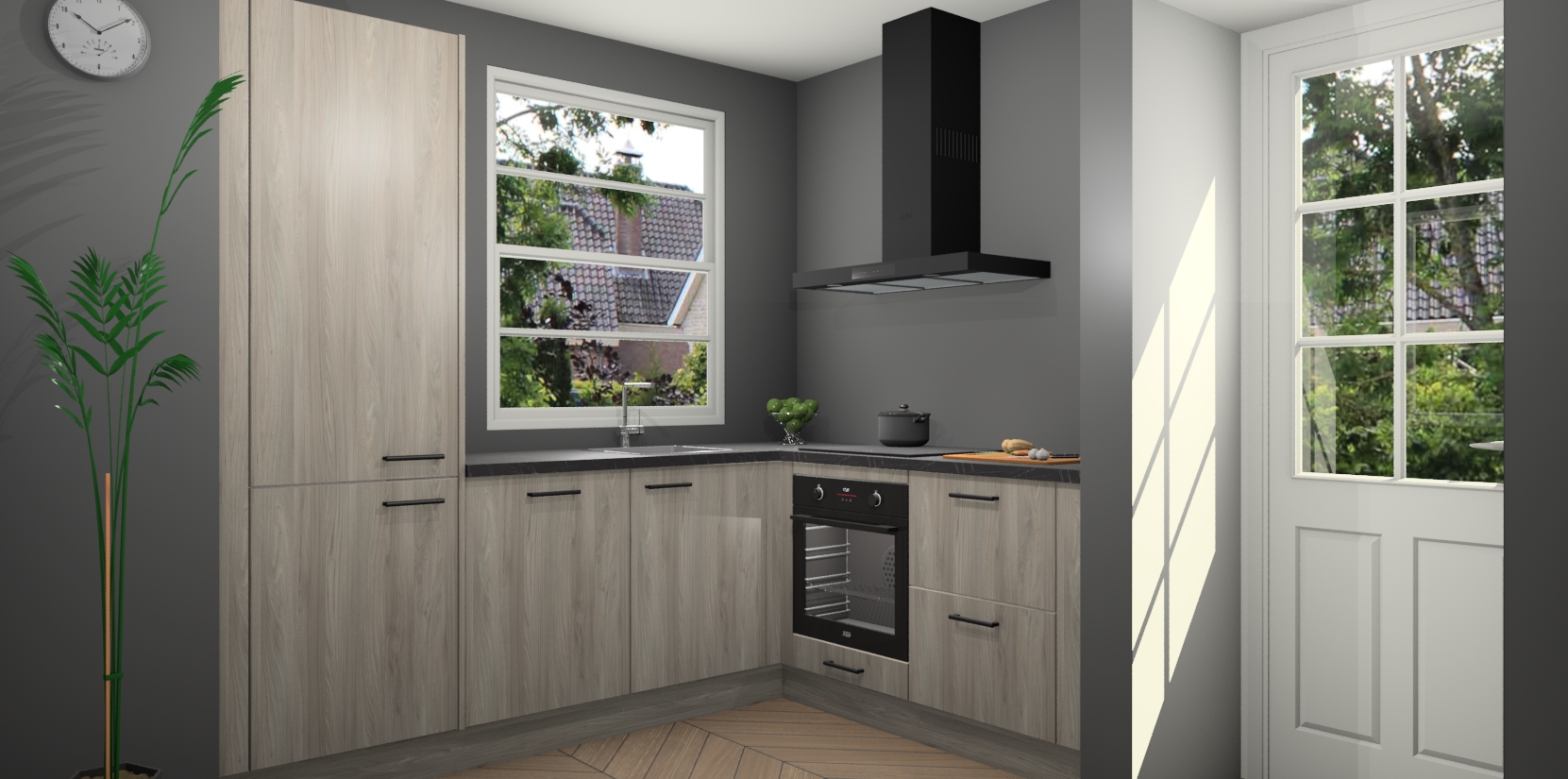 Wilt u een echte aanwinst voor uw keuken, maar bent u op zoek naar iets specialers dan de standaardkeukens? Kies dan voor de Olm keuken Harbin! Dit prachtige hoekkeukenontwerp geeft u alle ruimte om optimaal te genieten van heerlijk koken. Het uitmuntende afwerkingsniveau, de fraaie houtstructuur en de sfeervolle zwarte grepen maken van de Olm keuken Harbin de perfecte keuze voor zowel enthousiaste thuiskoks als design-minded interieurliefhebbers.