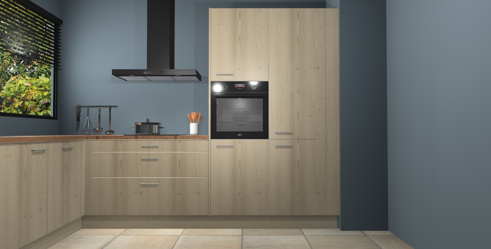 Met een modern, tijdloos design en ruime opslagruimte, zult u zich in no-time thuis voelen in uw nieuwe keuken. Uw leven wordt eenvoudiger met de soft-close deuren die voor het ultieme stille comfort zorgen - geen geluid dat u stoort terwijl u kookt. Ook is de keuken voorzien van 5 ingebouwde apparaten: een oven, inductie kookplaat, afzuigkap, vaatwasser en koelkast. Deze kunnen gemakkelijk na bestelling worden bijgewerkt naar AEG - waardoor uw luxe ervaring compleet is.