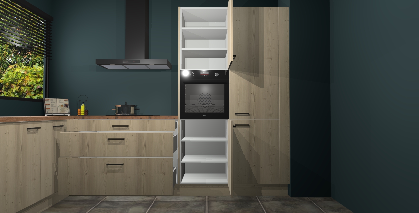 Met een modern, tijdloos design en ruime opslagruimte, zult u zich in no-time thuis voelen in uw nieuwe keuken. Uw leven wordt eenvoudiger met de soft-close deuren die voor het ultieme stille comfort zorgen - geen geluid dat u stoort terwijl u kookt. Ook is de keuken voorzien van 5 ingebouwde apparaten: een oven, inductie kookplaat, afzuigkap, vaatwasser en koelkast. Deze kunnen gemakkelijk na bestelling worden bijgewerkt naar AEG - waardoor uw luxe ervaring compleet is.