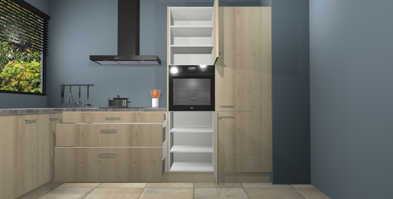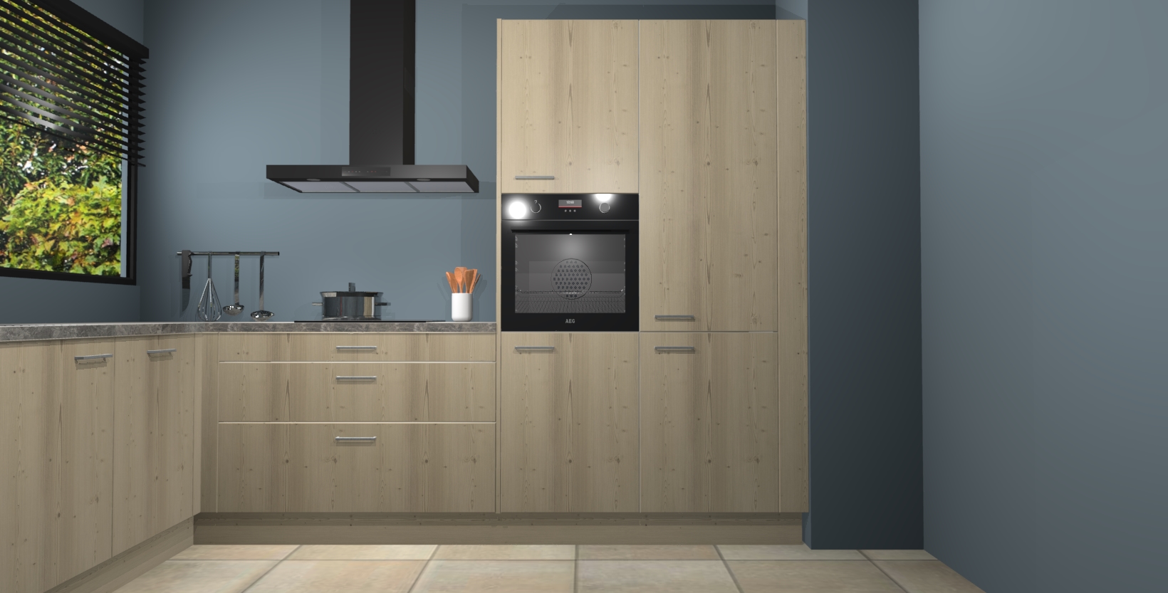 Met een modern, tijdloos design en ruime opslagruimte, zult u zich in no-time thuis voelen in uw nieuwe keuken. Uw leven wordt eenvoudiger met de soft-close deuren die voor het ultieme stille comfort zorgen - geen geluid dat u stoort terwijl u kookt. Ook is de keuken voorzien van 5 ingebouwde apparaten: een oven, inductie kookplaat, afzuigkap, vaatwasser en koelkast. Deze kunnen gemakkelijk na bestelling worden bijgewerkt naar AEG - waardoor uw luxe ervaring compleet is.