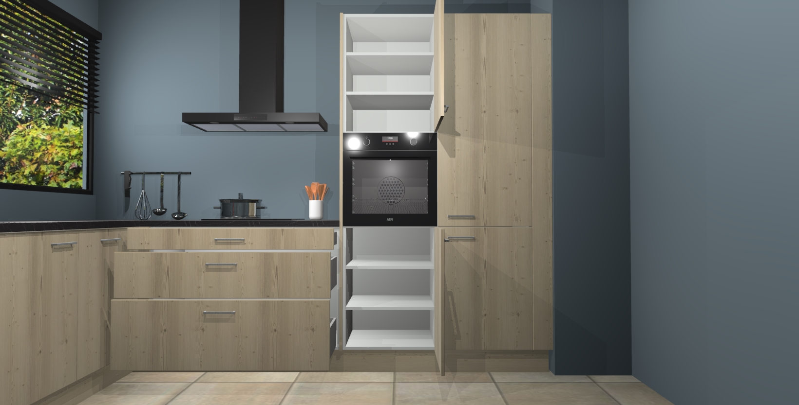 Met een modern, tijdloos design en ruime opslagruimte, zult u zich in no-time thuis voelen in uw nieuwe keuken. Uw leven wordt eenvoudiger met de soft-close deuren die voor het ultieme stille comfort zorgen - geen geluid dat u stoort terwijl u kookt. Ook is de keuken voorzien van 5 ingebouwde apparaten: een oven, inductie kookplaat, afzuigkap, vaatwasser en koelkast. Deze kunnen gemakkelijk na bestelling worden bijgewerkt naar AEG - waardoor uw luxe ervaring compleet is.