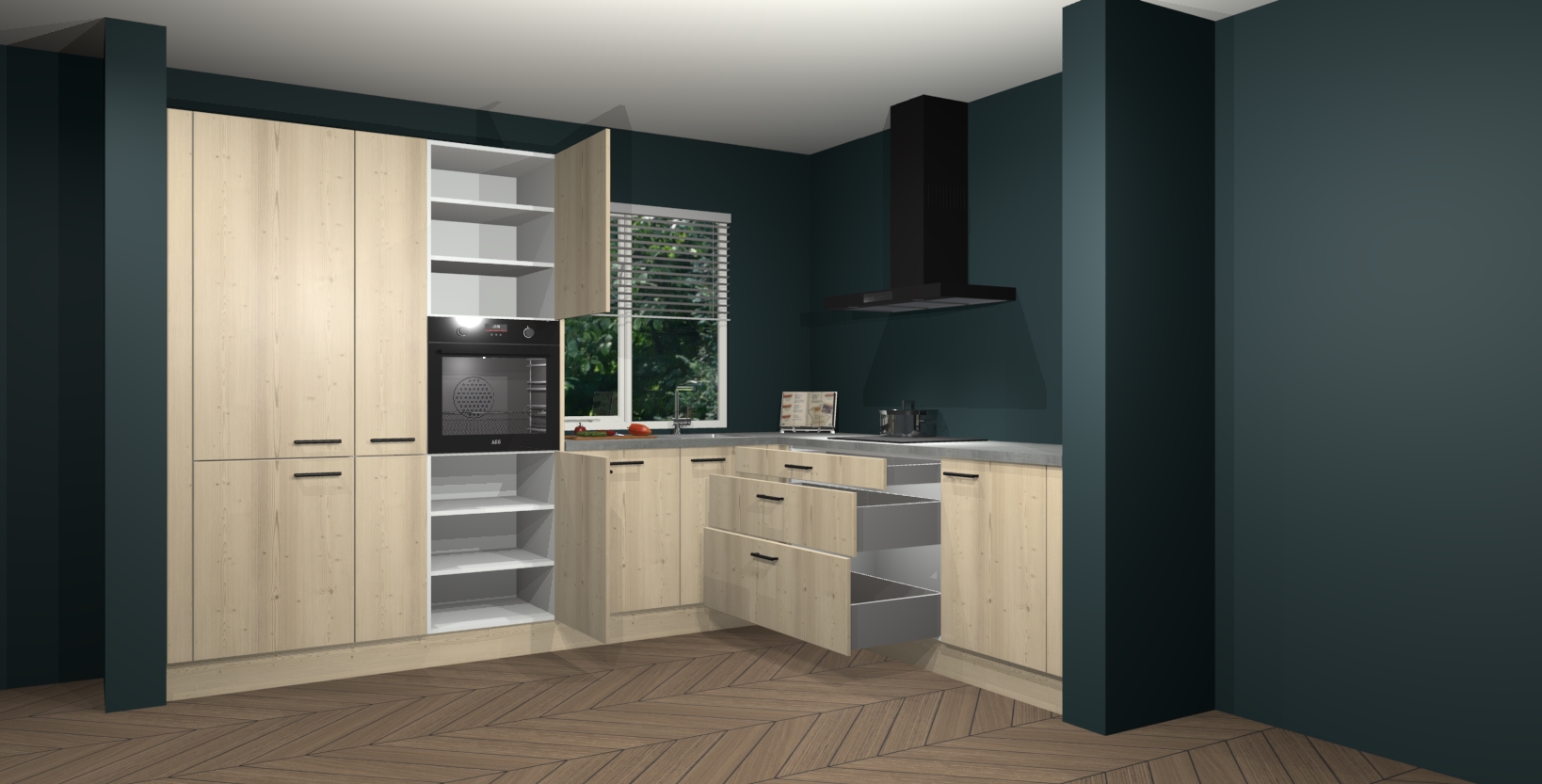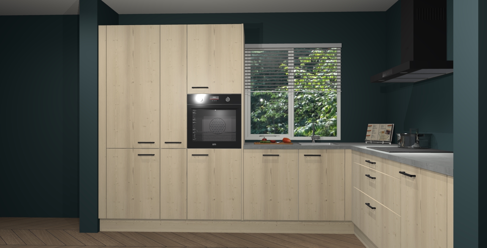 Met een modern, tijdloos design en ruime opslagruimte, zult u zich in no-time thuis voelen in uw nieuwe keuken. Uw leven wordt eenvoudiger met de soft-close deuren die voor het ultieme stille comfort zorgen - geen geluid dat u stoort terwijl u kookt. Ook is de keuken voorzien van 5 ingebouwde apparaten: een oven, inductie kookplaat, afzuigkap, vaatwasser en koelkast. Deze kunnen gemakkelijk na bestelling worden bijgewerkt naar AEG - waardoor uw luxe ervaring compleet is.