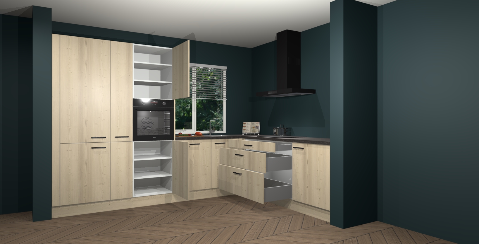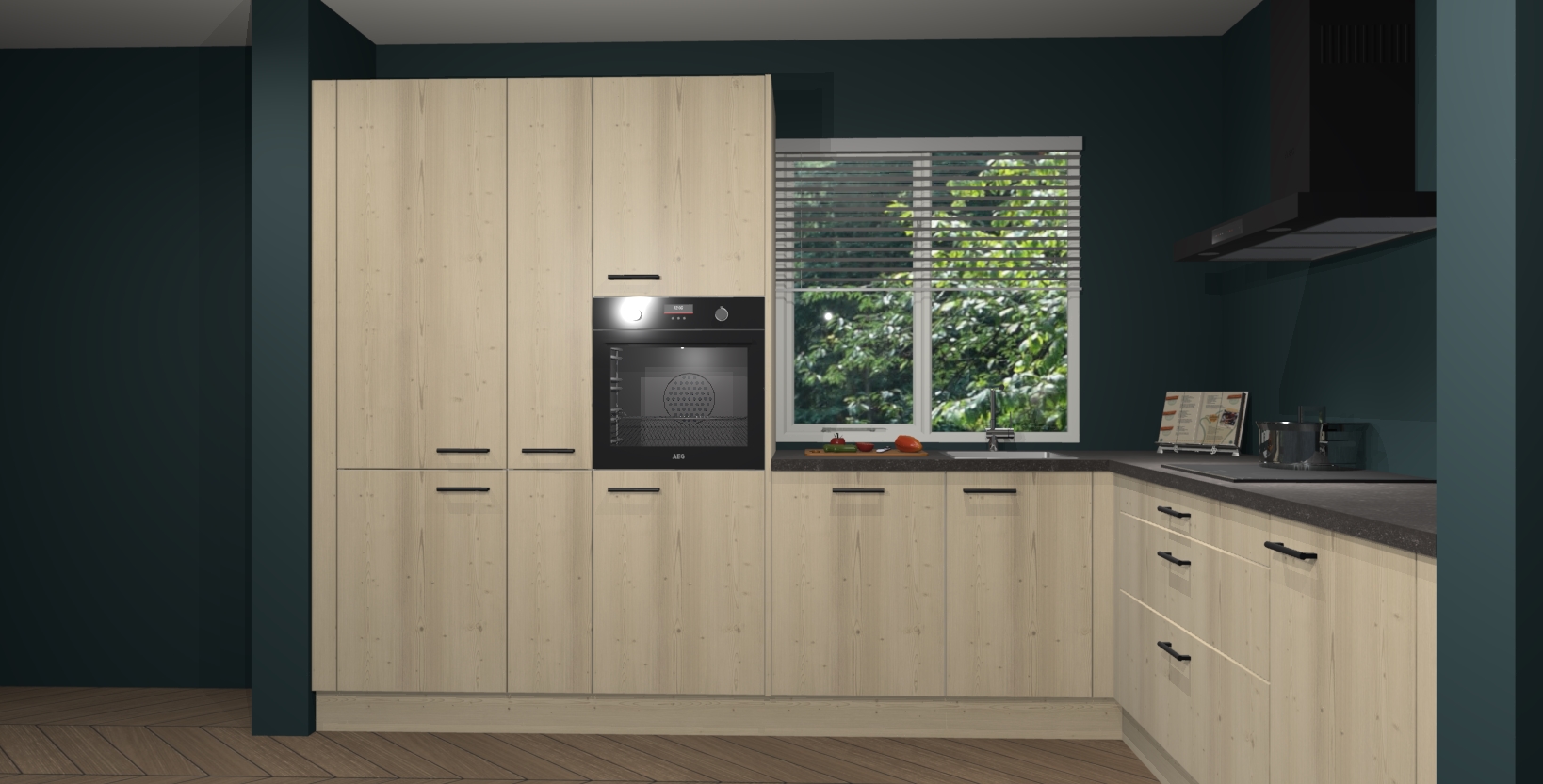 Met een modern, tijdloos design en ruime opslagruimte, zult u zich in no-time thuis voelen in uw nieuwe keuken. Uw leven wordt eenvoudiger met de soft-close deuren die voor het ultieme stille comfort zorgen - geen geluid dat u stoort terwijl u kookt. Ook is de keuken voorzien van 5 ingebouwde apparaten: een oven, inductie kookplaat, afzuigkap, vaatwasser en koelkast. Deze kunnen gemakkelijk na bestelling worden bijgewerkt naar AEG - waardoor uw luxe ervaring compleet is.