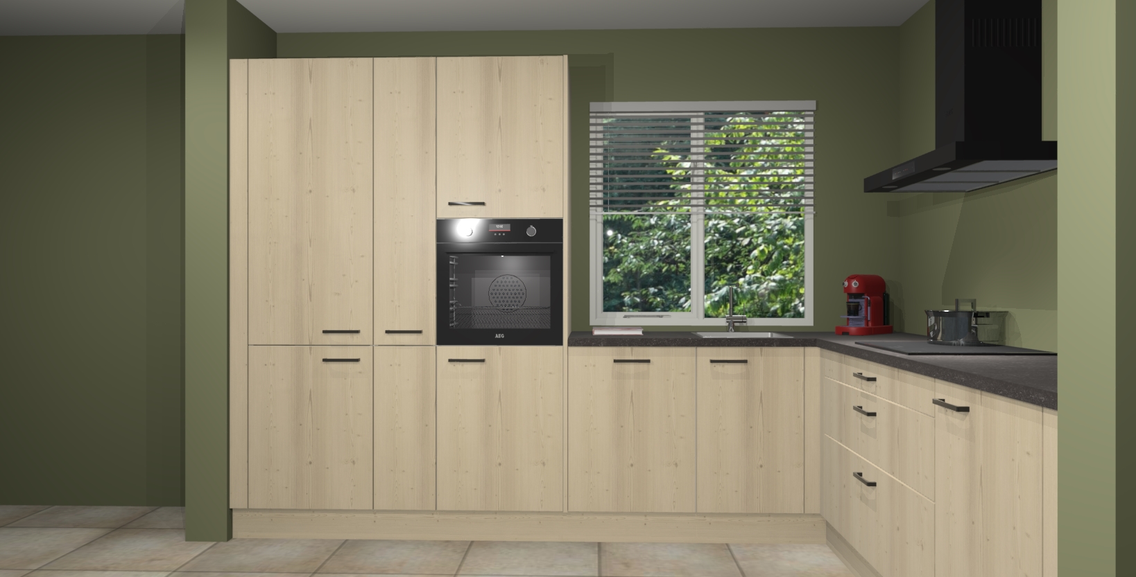 Met een modern, tijdloos design en ruime opslagruimte, zult u zich in no-time thuis voelen in uw nieuwe keuken. Uw leven wordt eenvoudiger met de soft-close deuren die voor het ultieme stille comfort zorgen - geen geluid dat u stoort terwijl u kookt. Ook is de keuken voorzien van 5 ingebouwde apparaten: een oven, inductie kookplaat, afzuigkap, vaatwasser en koelkast. Deze kunnen gemakkelijk na bestelling worden bijgewerkt naar AEG - waardoor uw luxe ervaring compleet is.