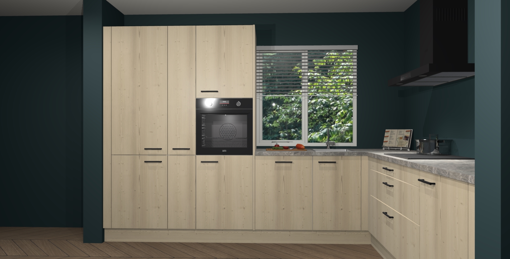 Met een modern, tijdloos design en ruime opslagruimte, zult u zich in no-time thuis voelen in uw nieuwe keuken. Uw leven wordt eenvoudiger met de soft-close deuren die voor het ultieme stille comfort zorgen - geen geluid dat u stoort terwijl u kookt. Ook is de keuken voorzien van 5 ingebouwde apparaten: een oven, inductie kookplaat, afzuigkap, vaatwasser en koelkast. Deze kunnen gemakkelijk na bestelling worden bijgewerkt naar AEG - waardoor uw luxe ervaring compleet is.