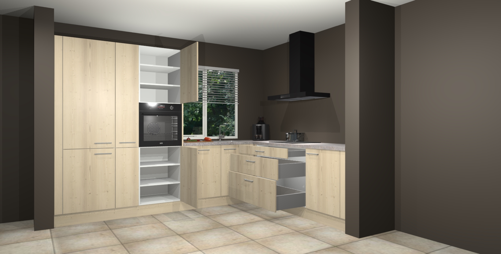 Met een modern, tijdloos design en ruime opslagruimte, zult u zich in no-time thuis voelen in uw nieuwe keuken. Uw leven wordt eenvoudiger met de soft-close deuren die voor het ultieme stille comfort zorgen - geen geluid dat u stoort terwijl u kookt. Ook is de keuken voorzien van 5 ingebouwde apparaten: een oven, inductie kookplaat, afzuigkap, vaatwasser en koelkast. Deze kunnen gemakkelijk na bestelling worden bijgewerkt naar AEG - waardoor uw luxe ervaring compleet is.