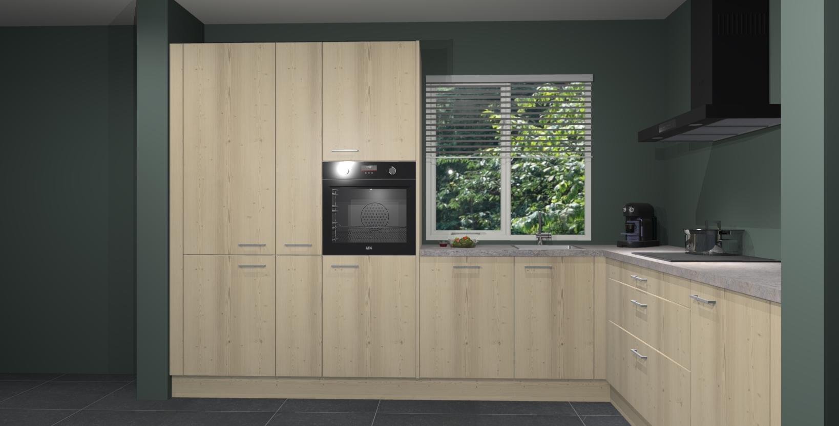 Met een modern, tijdloos design en ruime opslagruimte, zult u zich in no-time thuis voelen in uw nieuwe keuken. Uw leven wordt eenvoudiger met de soft-close deuren die voor het ultieme stille comfort zorgen - geen geluid dat u stoort terwijl u kookt. Ook is de keuken voorzien van 5 ingebouwde apparaten: een oven, inductie kookplaat, afzuigkap, vaatwasser en koelkast. Deze kunnen gemakkelijk na bestelling worden bijgewerkt naar AEG - waardoor uw luxe ervaring compleet is.