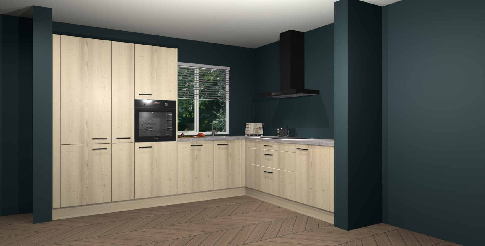 Met een modern, tijdloos design en ruime opslagruimte, zult u zich in no-time thuis voelen in uw nieuwe keuken. Uw leven wordt eenvoudiger met de soft-close deuren die voor het ultieme stille comfort zorgen - geen geluid dat u stoort terwijl u kookt. Ook is de keuken voorzien van 5 ingebouwde apparaten: een oven, inductie kookplaat, afzuigkap, vaatwasser en koelkast. Deze kunnen gemakkelijk na bestelling worden bijgewerkt naar AEG - waardoor uw luxe ervaring compleet is.