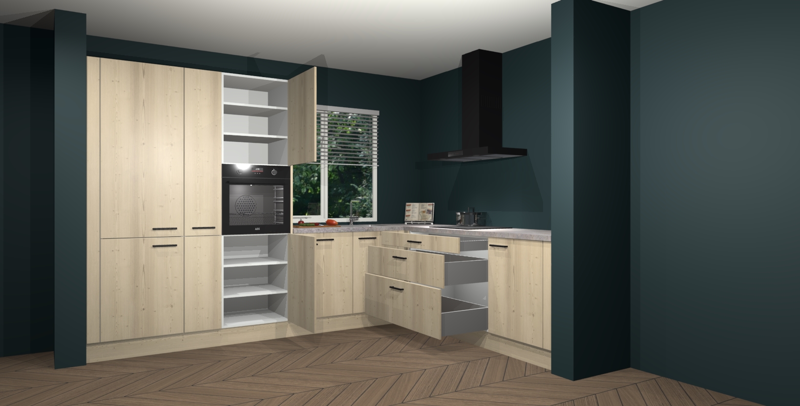 In deze box zijn alle kleuren verzameld van de deuren en werkbladen. Vraag de gratis kleurenbox aan en kijk thuis rustig verder!