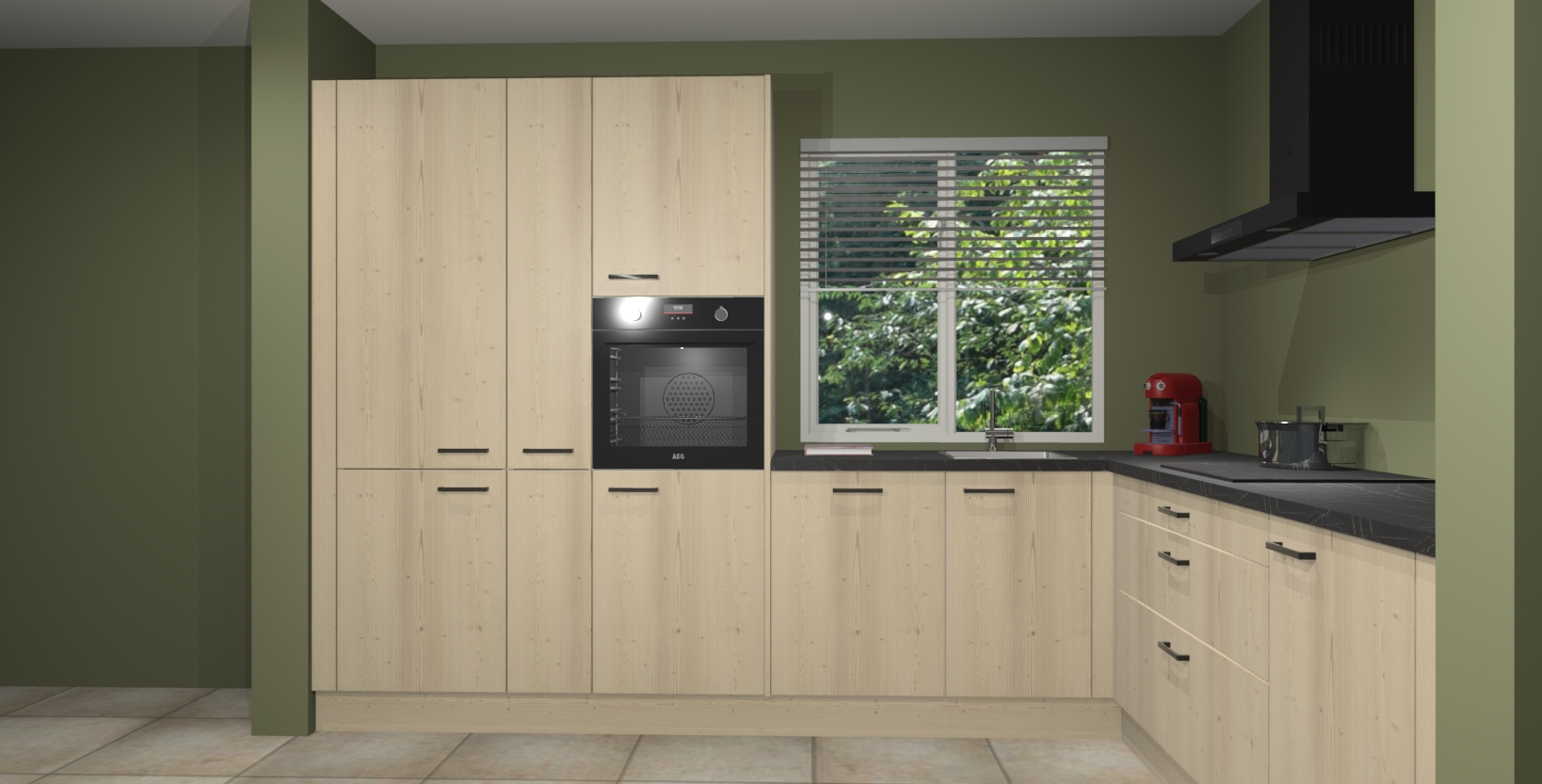 Met een modern, tijdloos design en ruime opslagruimte, zult u zich in no-time thuis voelen in uw nieuwe keuken. Uw leven wordt eenvoudiger met de soft-close deuren die voor het ultieme stille comfort zorgen - geen geluid dat u stoort terwijl u kookt. Ook is de keuken voorzien van 5 ingebouwde apparaten: een oven, inductie kookplaat, afzuigkap, vaatwasser en koelkast. Deze kunnen gemakkelijk na bestelling worden bijgewerkt naar AEG - waardoor uw luxe ervaring compleet is.