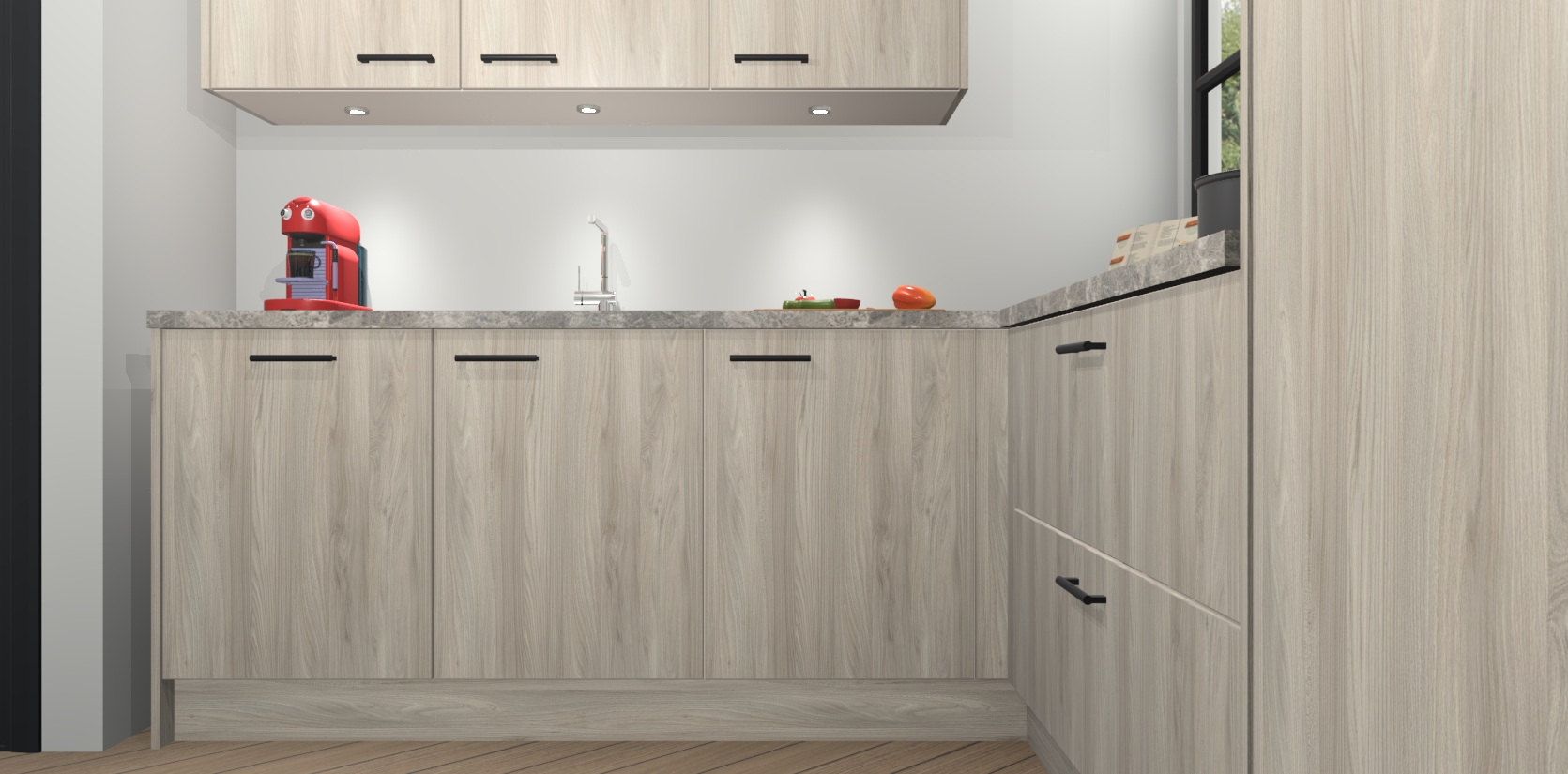 Als extra werd de prijs zo laag mogelijk vastgesteld, zonder aan de kwaliteit te raken. Zo heb je gegarandeerde Duitse keukenkwaliteit waarmee je jarenlang plezier beleeft aan het ontwerp. En dat alles wordt gecombineerd met een supersnelle service van maar liefst 7 weken!