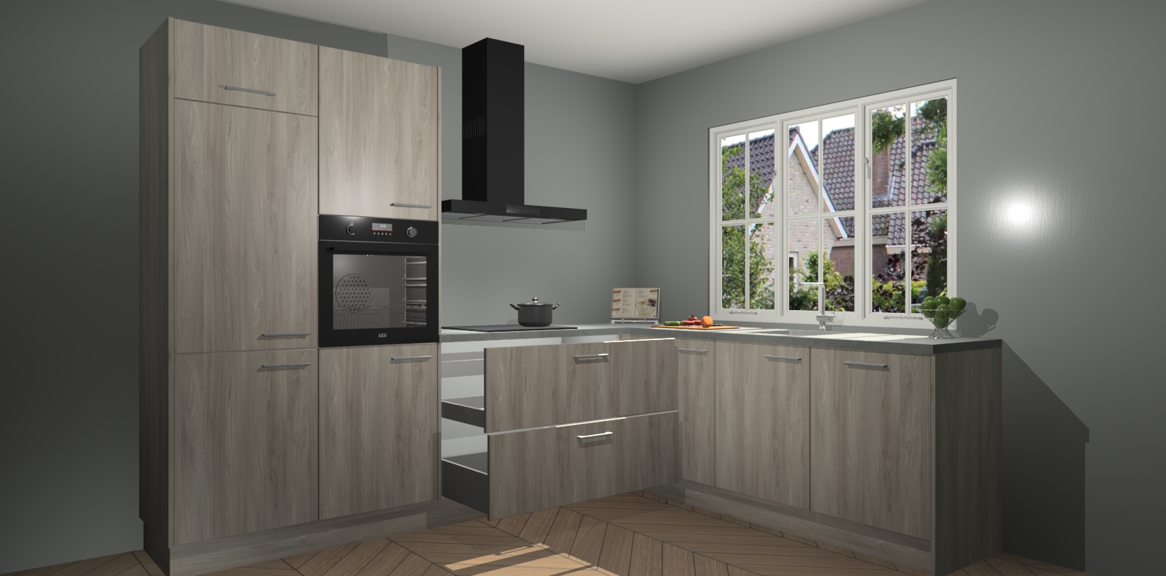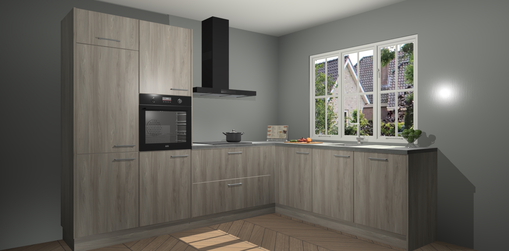 Heeft u genoeg van dezelfde keukenontwerpen die de markt overspoelen? Dan is de Olm keuken Kazan de juiste keuze voor u! Deze prachtige hoekkeuken heeft een modern en tijdloos design dat een elegant tintje geeft aan uw ruimte.