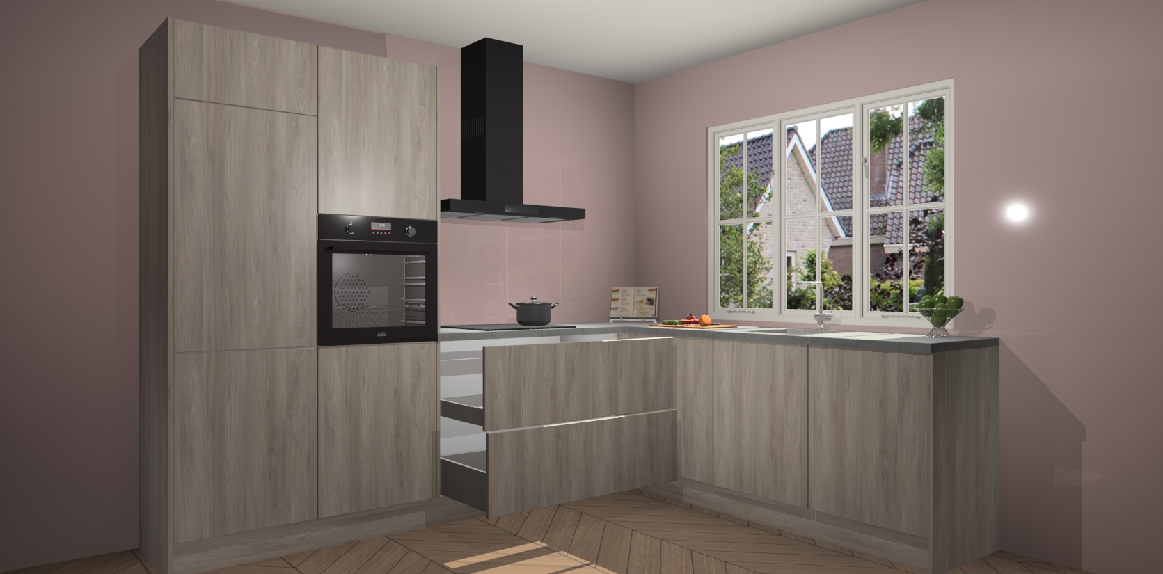 Heeft u genoeg van dezelfde keukenontwerpen die de markt overspoelen? Dan is de Olm keuken Kazan de juiste keuze voor u! Deze prachtige hoekkeuken heeft een modern en tijdloos design dat een elegant tintje geeft aan uw ruimte.