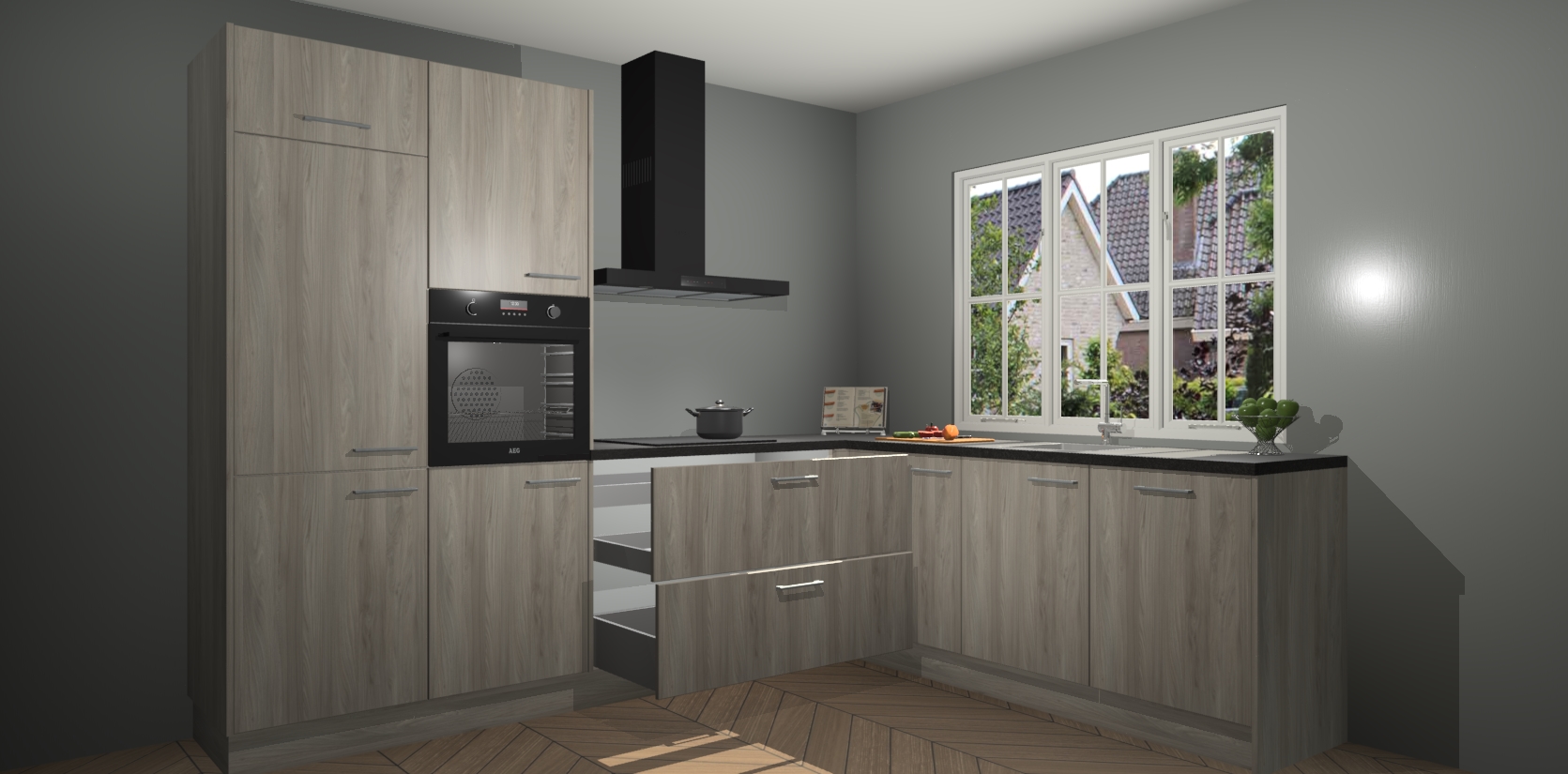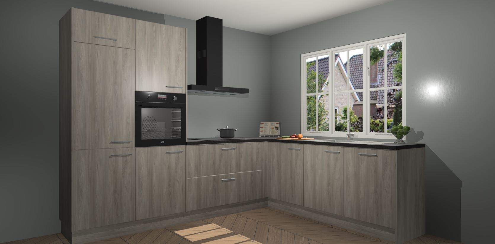 Heeft u genoeg van dezelfde keukenontwerpen die de markt overspoelen? Dan is de Olm keuken Kazan de juiste keuze voor u! Deze prachtige hoekkeuken heeft een modern en tijdloos design dat een elegant tintje geeft aan uw ruimte.