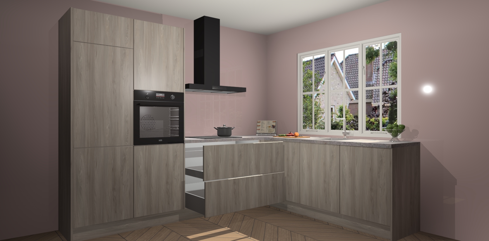Heeft u genoeg van dezelfde keukenontwerpen die de markt overspoelen? Dan is de Olm keuken Kazan de juiste keuze voor u! Deze prachtige hoekkeuken heeft een modern en tijdloos design dat een elegant tintje geeft aan uw ruimte.