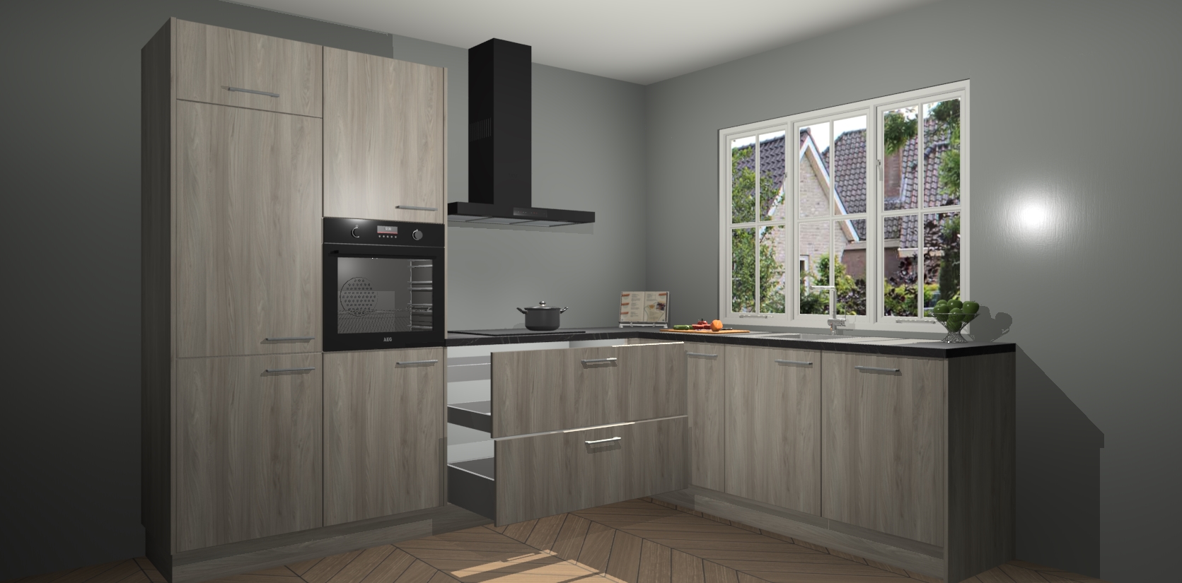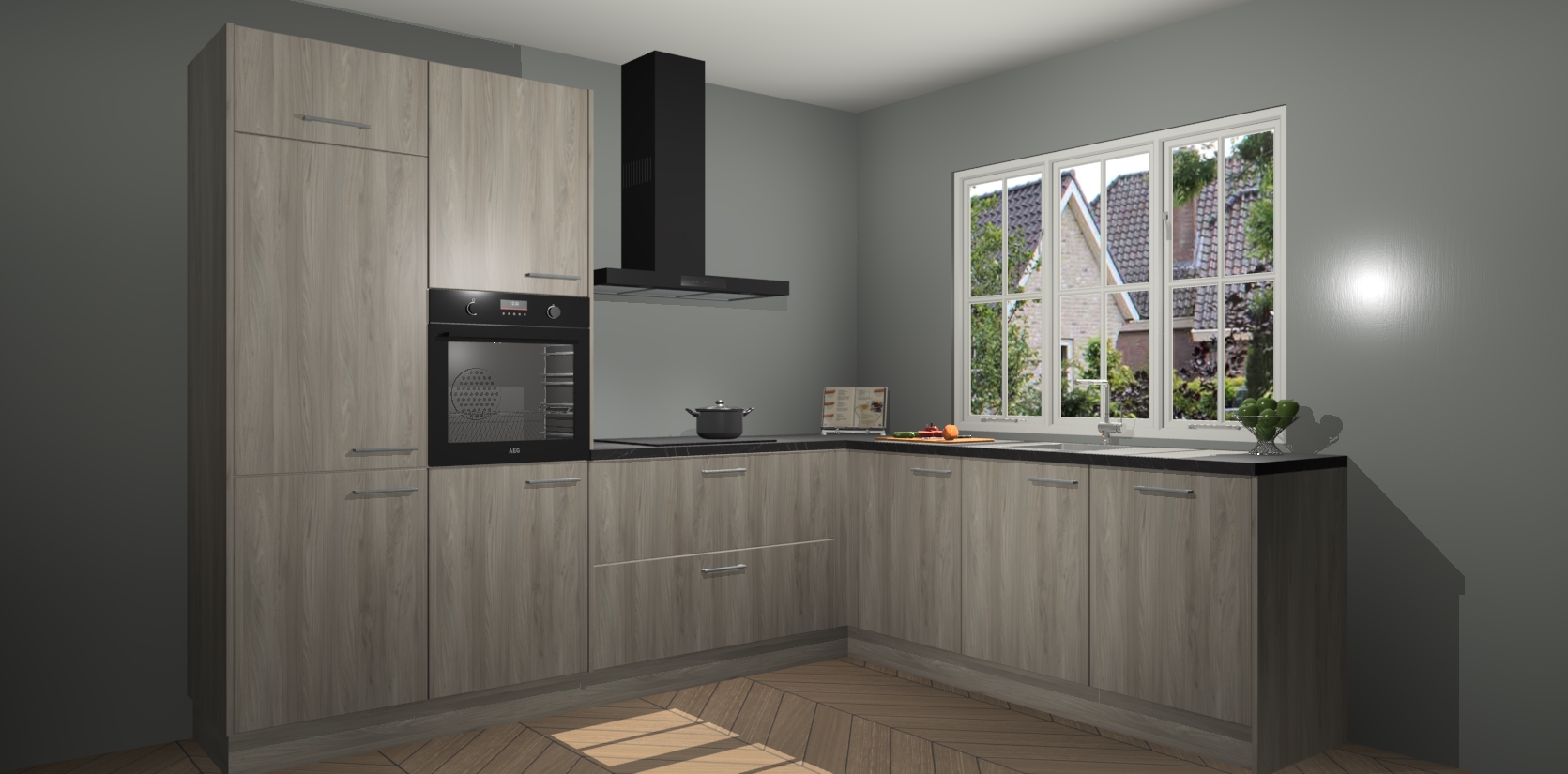 Heeft u genoeg van dezelfde keukenontwerpen die de markt overspoelen? Dan is de Olm keuken Kazan de juiste keuze voor u! Deze prachtige hoekkeuken heeft een modern en tijdloos design dat een elegant tintje geeft aan uw ruimte.