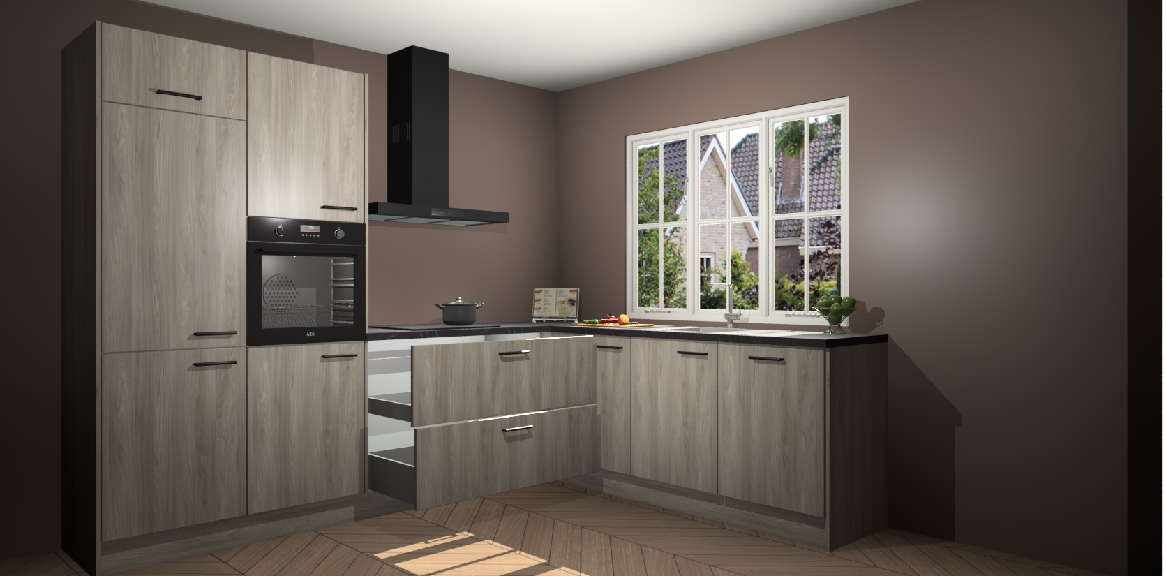 Heeft u genoeg van dezelfde keukenontwerpen die de markt overspoelen? Dan is de Olm keuken Kazan de juiste keuze voor u! Deze prachtige hoekkeuken heeft een modern en tijdloos design dat een elegant tintje geeft aan uw ruimte.