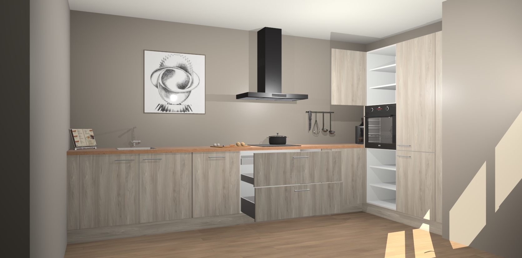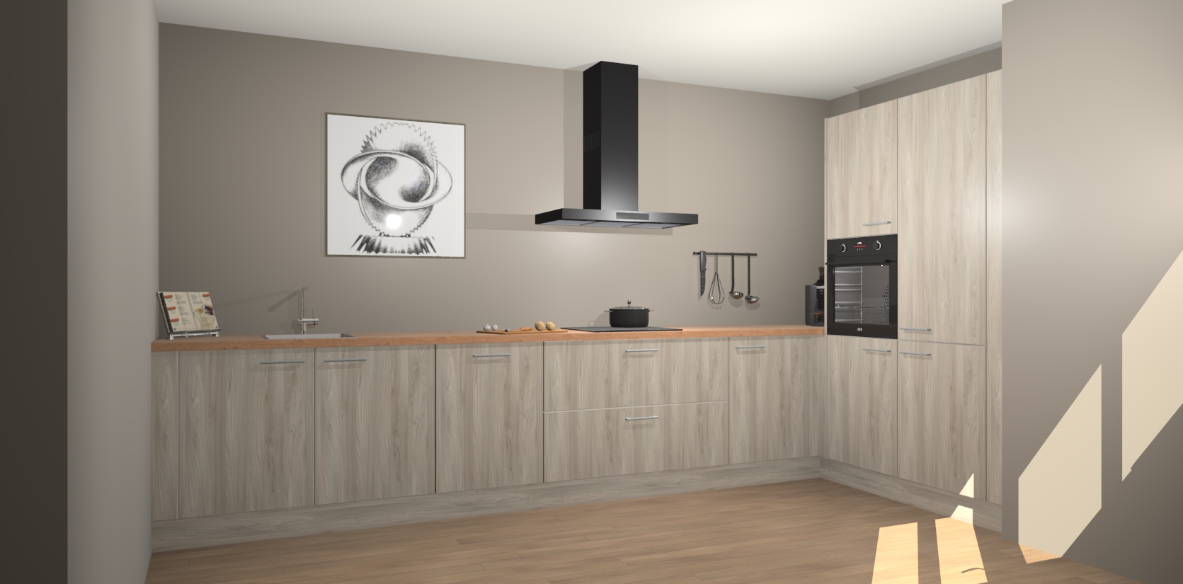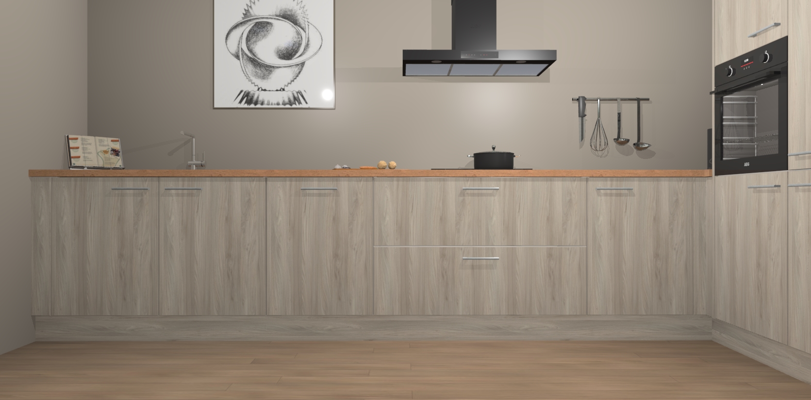 Welkom bij de Olm keuken Khao Lak. Deze prachtige keuken zal de komende jaren het middelpunt van de belangstelling in uw huis zijn. Uitgerust met vijf inbouwapparaten komt u nooit kookgereedschap tekort. Bovendien geeft de warme houtlook elke ruimte een uitnodigende en tijdloze uitstraling.