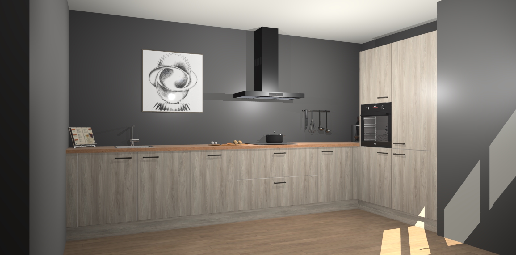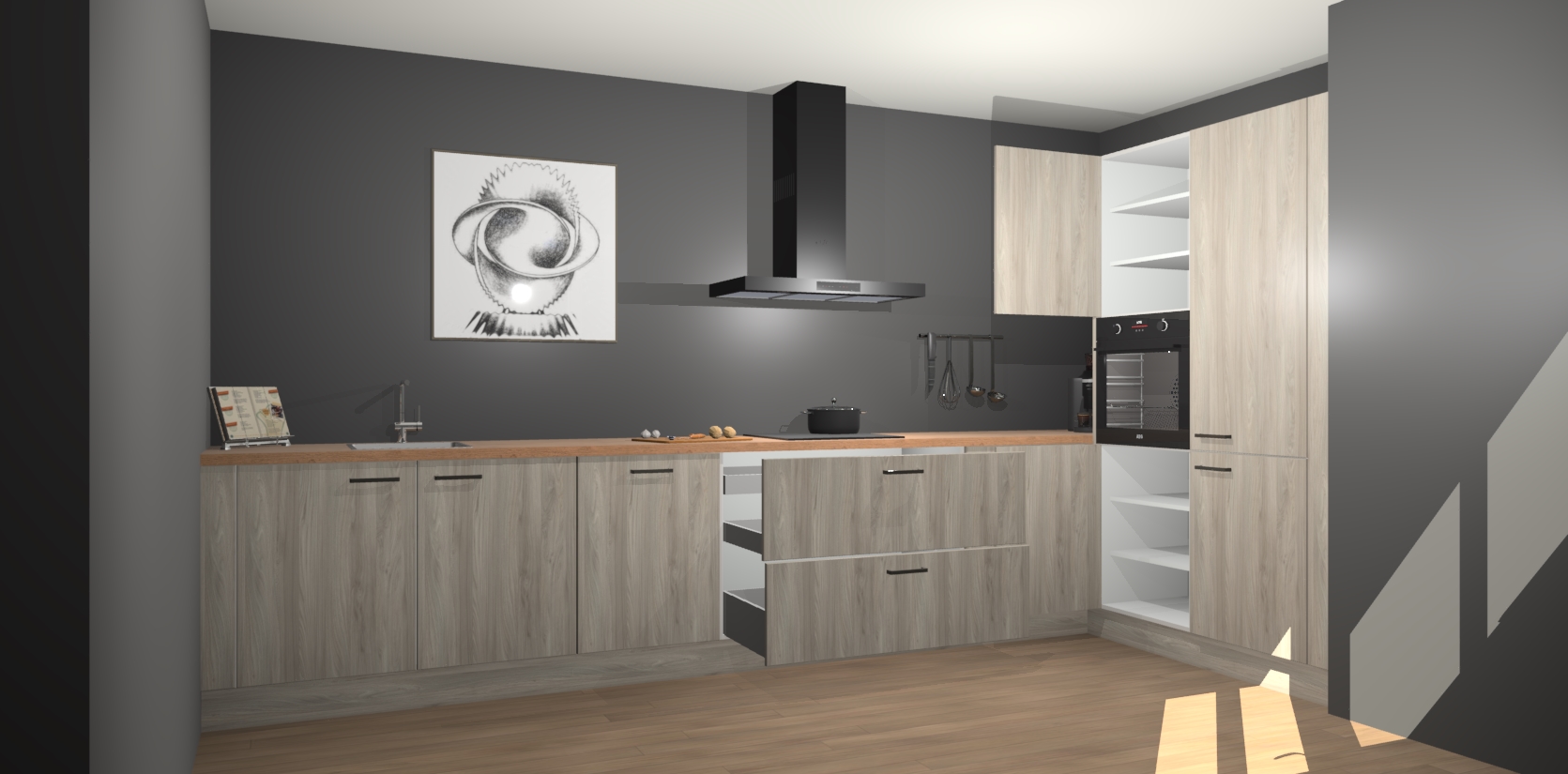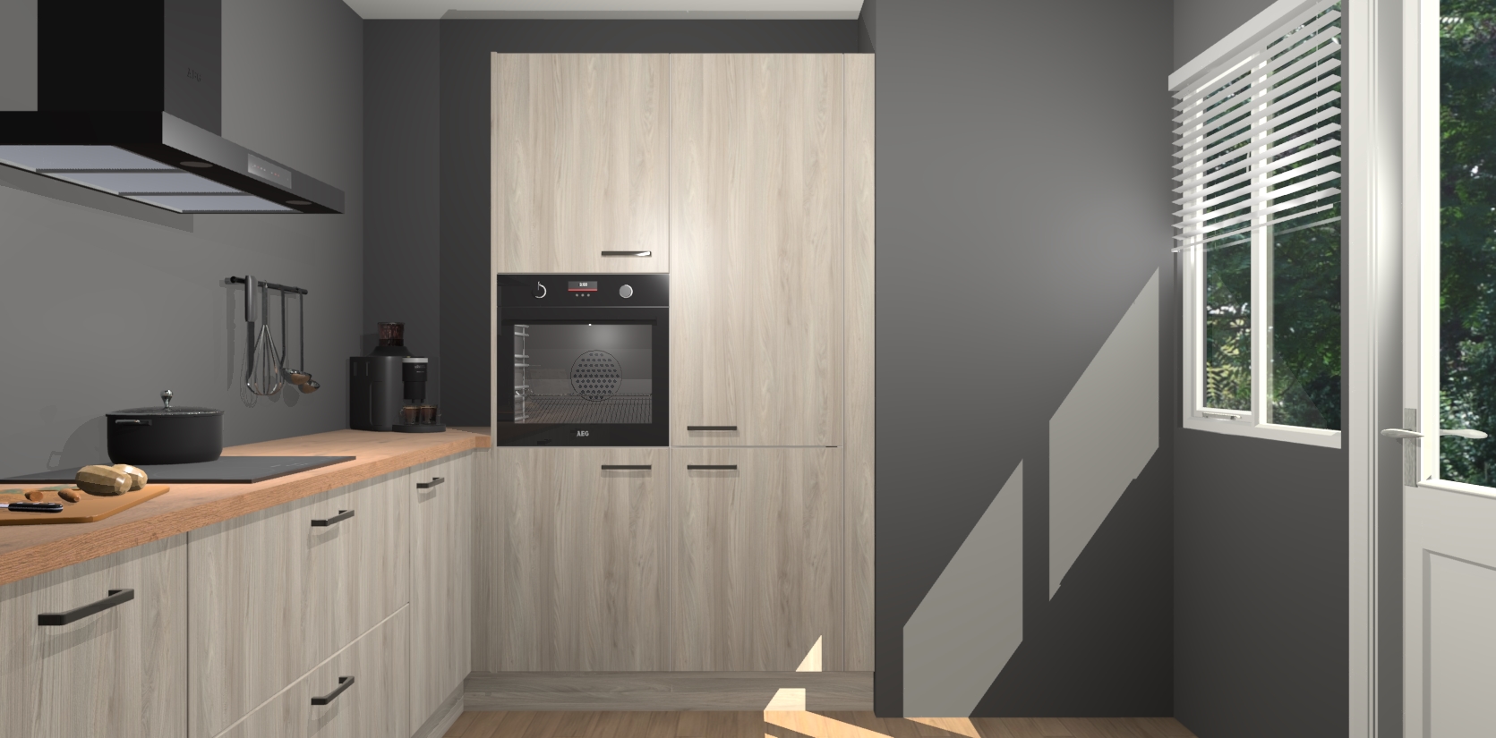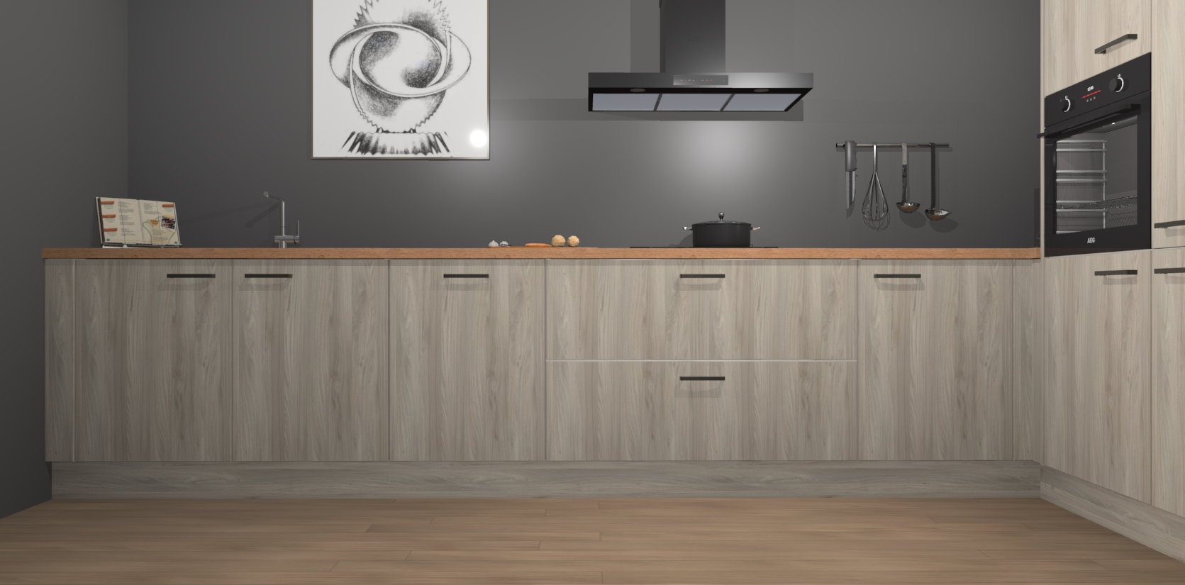 Welkom bij de Olm keuken Khao Lak. Deze prachtige keuken zal de komende jaren het middelpunt van de belangstelling in uw huis zijn. Uitgerust met vijf inbouwapparaten komt u nooit kookgereedschap tekort. Bovendien geeft de warme houtlook elke ruimte een uitnodigende en tijdloze uitstraling.
