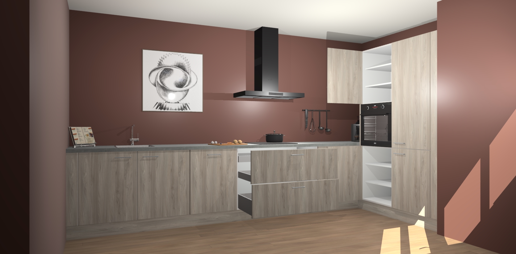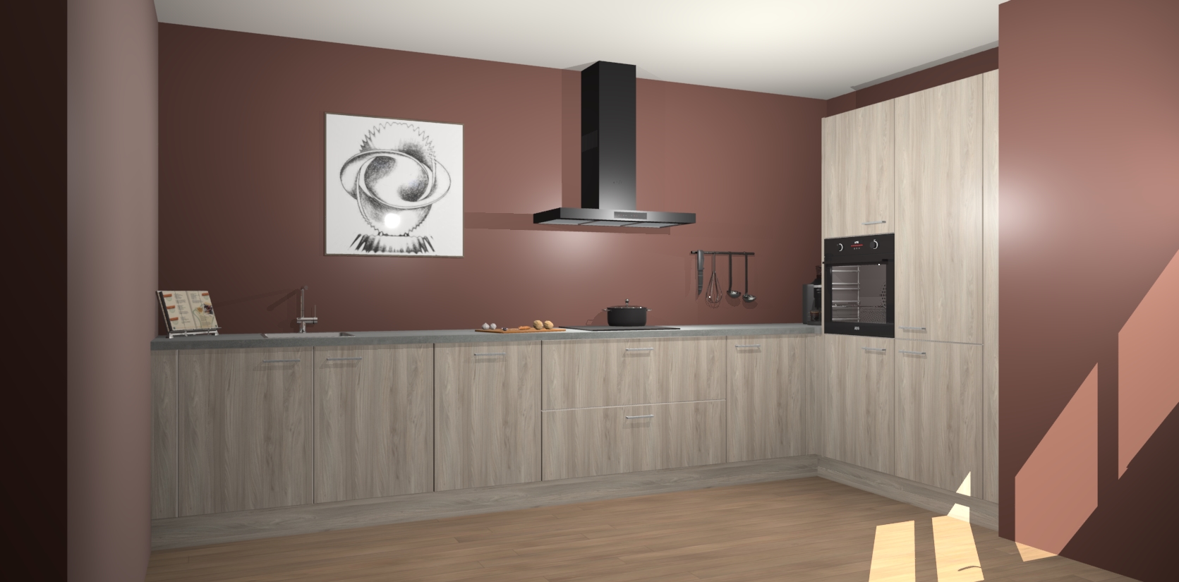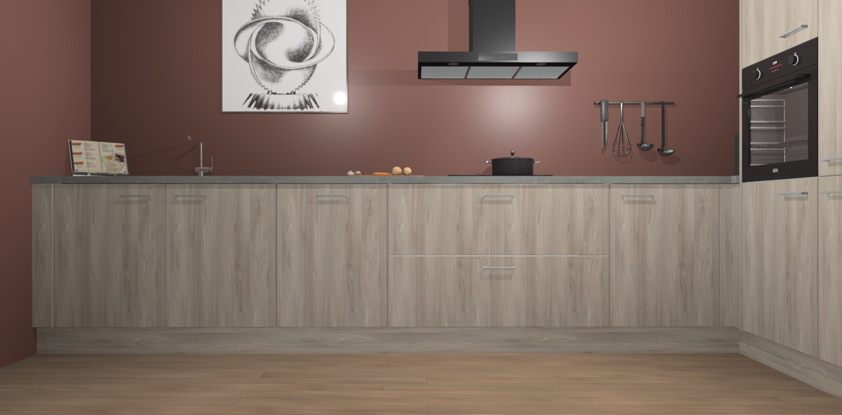 Welkom bij de Olm keuken Khao Lak. Deze prachtige keuken zal de komende jaren het middelpunt van de belangstelling in uw huis zijn. Uitgerust met vijf inbouwapparaten komt u nooit kookgereedschap tekort. Bovendien geeft de warme houtlook elke ruimte een uitnodigende en tijdloze uitstraling.