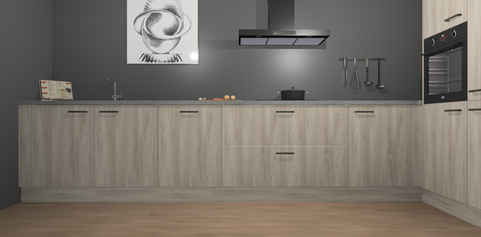 Welkom bij de Olm keuken Khao Lak. Deze prachtige keuken zal de komende jaren het middelpunt van de belangstelling in uw huis zijn. Uitgerust met vijf inbouwapparaten komt u nooit kookgereedschap tekort. Bovendien geeft de warme houtlook elke ruimte een uitnodigende en tijdloze uitstraling.