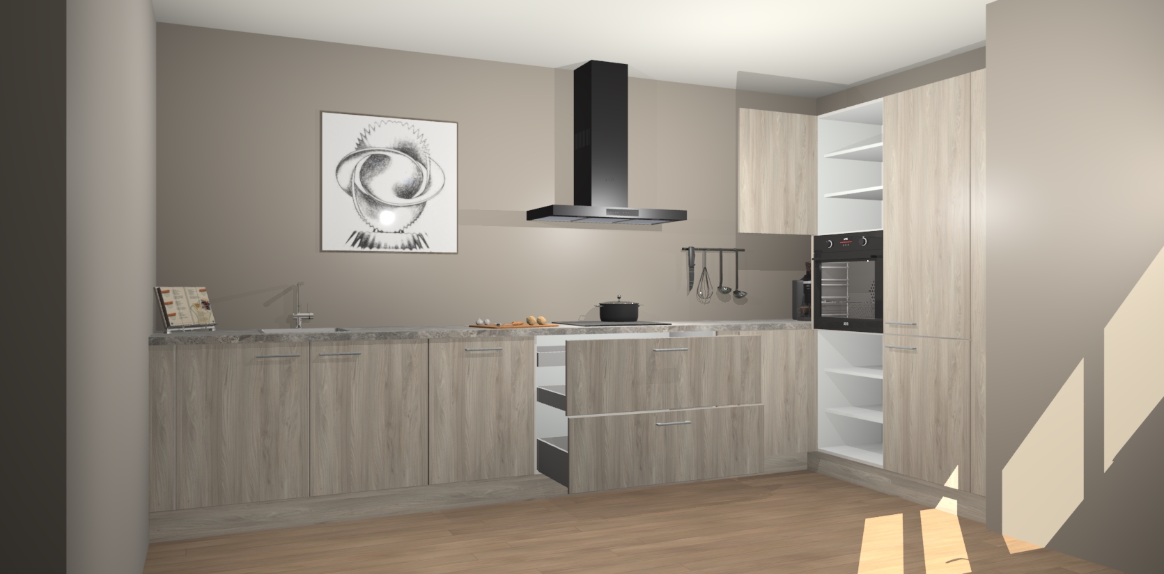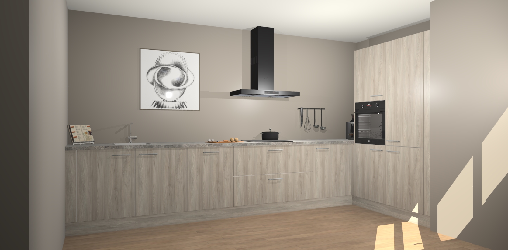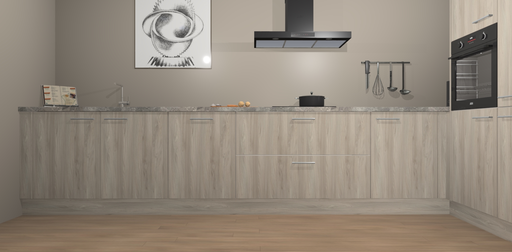 Welkom bij de Olm keuken Khao Lak. Deze prachtige keuken zal de komende jaren het middelpunt van de belangstelling in uw huis zijn. Uitgerust met vijf inbouwapparaten komt u nooit kookgereedschap tekort. Bovendien geeft de warme houtlook elke ruimte een uitnodigende en tijdloze uitstraling.