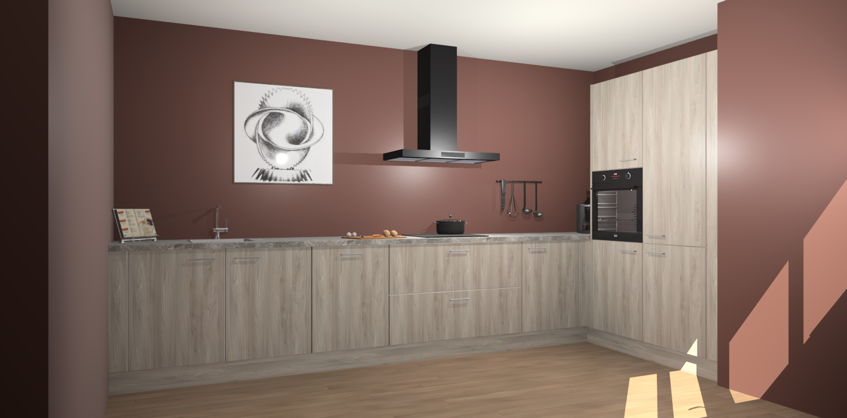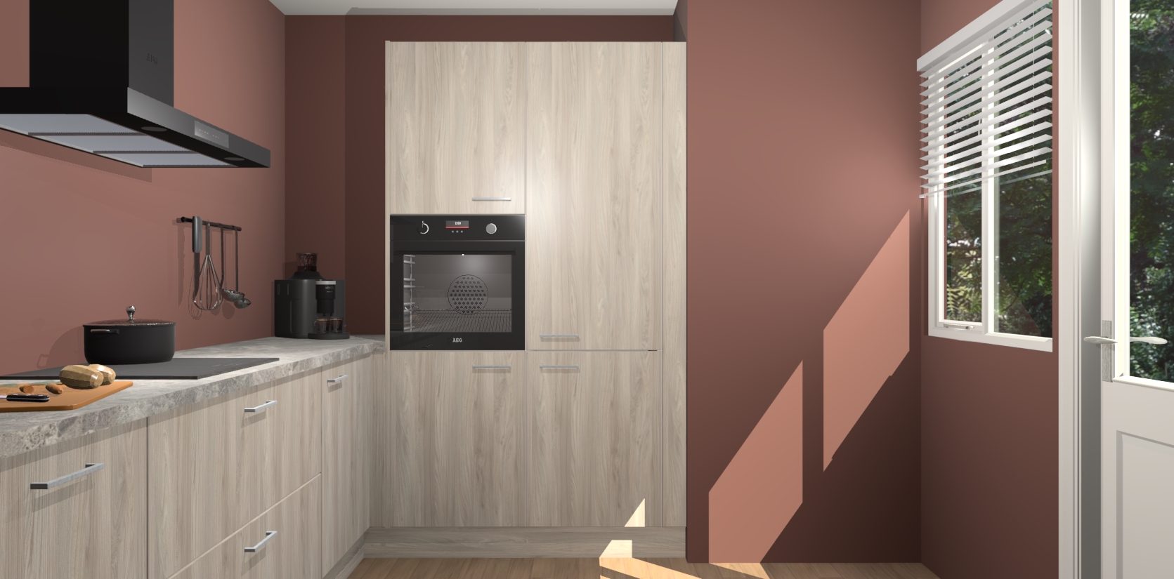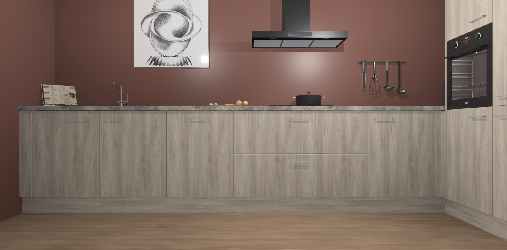 Welkom bij de Olm keuken Khao Lak. Deze prachtige keuken zal de komende jaren het middelpunt van de belangstelling in uw huis zijn. Uitgerust met vijf inbouwapparaten komt u nooit kookgereedschap tekort. Bovendien geeft de warme houtlook elke ruimte een uitnodigende en tijdloze uitstraling.