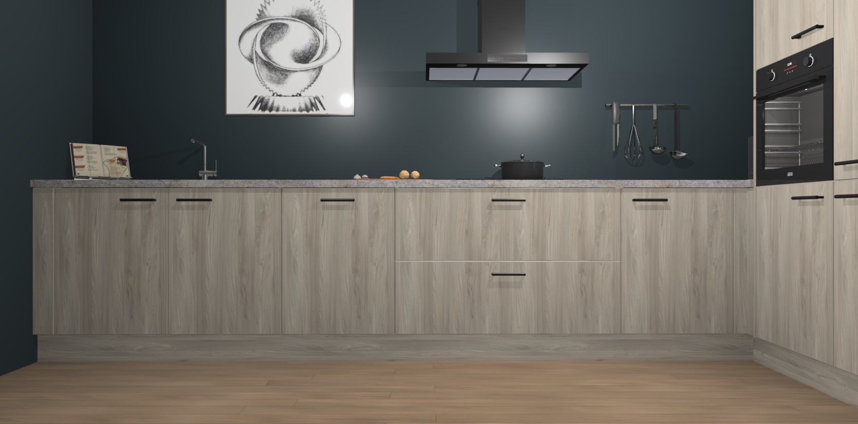 Welkom bij de Olm keuken Khao Lak. Deze prachtige keuken zal de komende jaren het middelpunt van de belangstelling in uw huis zijn. Uitgerust met vijf inbouwapparaten komt u nooit kookgereedschap tekort. Bovendien geeft de warme houtlook elke ruimte een uitnodigende en tijdloze uitstraling.