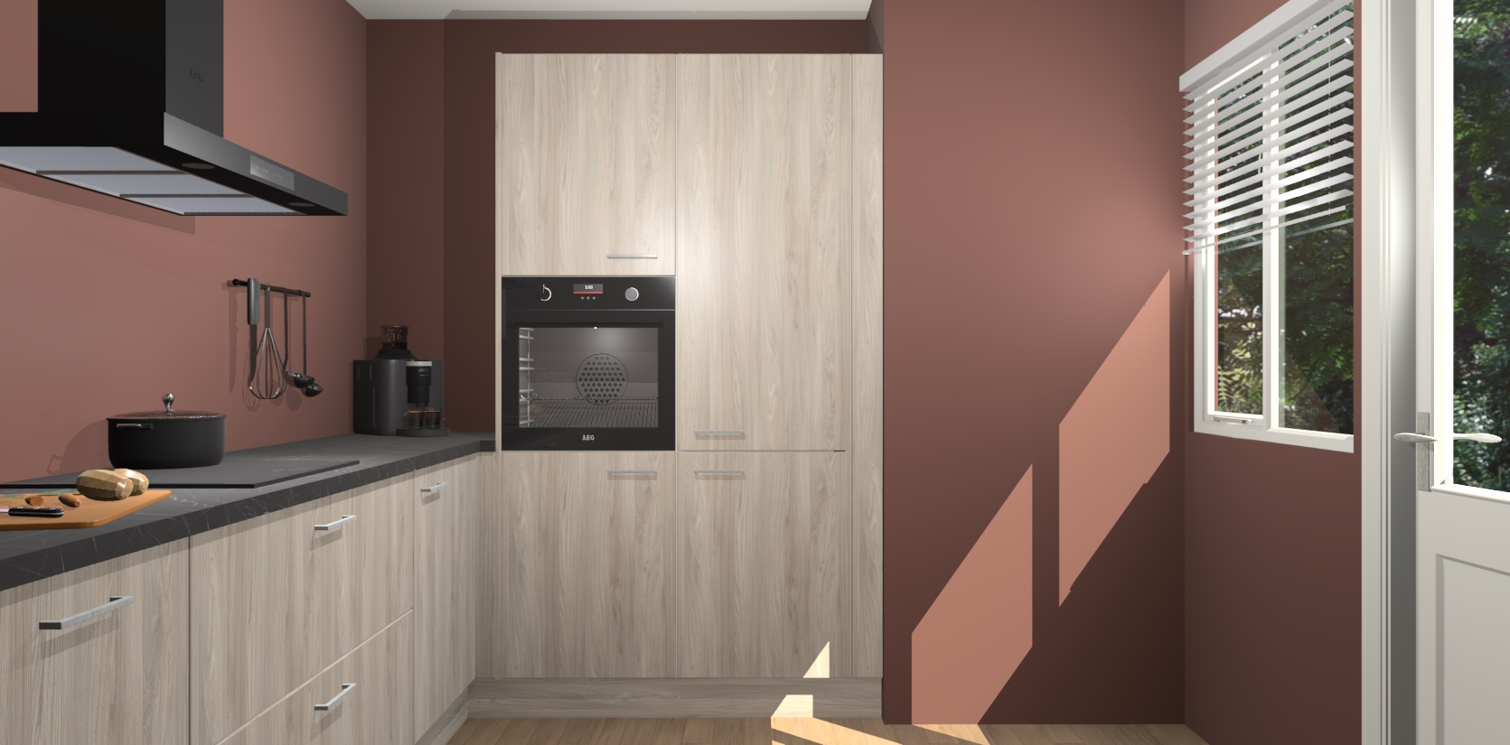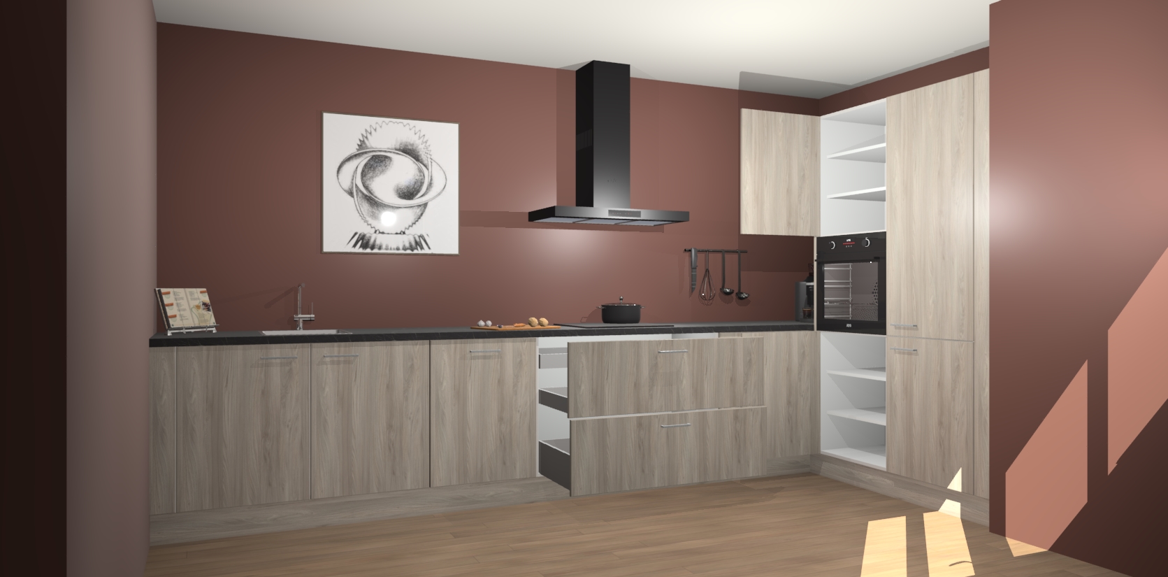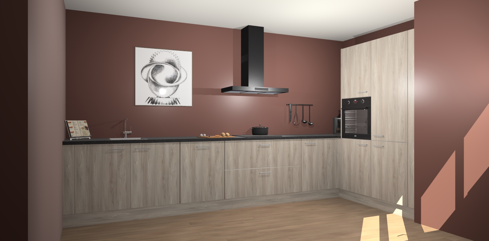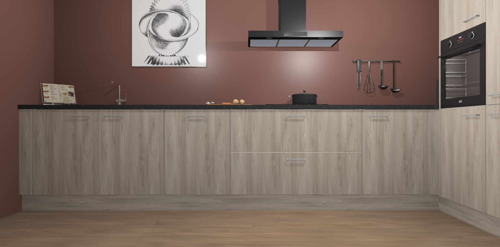 Welkom bij de Olm keuken Khao Lak. Deze prachtige keuken zal de komende jaren het middelpunt van de belangstelling in uw huis zijn. Uitgerust met vijf inbouwapparaten komt u nooit kookgereedschap tekort. Bovendien geeft de warme houtlook elke ruimte een uitnodigende en tijdloze uitstraling.