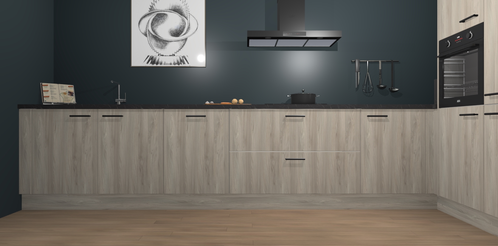 Welkom bij de Olm keuken Khao Lak. Deze prachtige keuken zal de komende jaren het middelpunt van de belangstelling in uw huis zijn. Uitgerust met vijf inbouwapparaten komt u nooit kookgereedschap tekort. Bovendien geeft de warme houtlook elke ruimte een uitnodigende en tijdloze uitstraling.