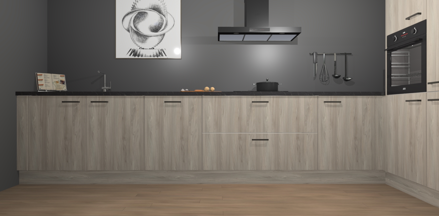 Welkom bij de Olm keuken Khao Lak. Deze prachtige keuken zal de komende jaren het middelpunt van de belangstelling in uw huis zijn. Uitgerust met vijf inbouwapparaten komt u nooit kookgereedschap tekort. Bovendien geeft de warme houtlook elke ruimte een uitnodigende en tijdloze uitstraling.