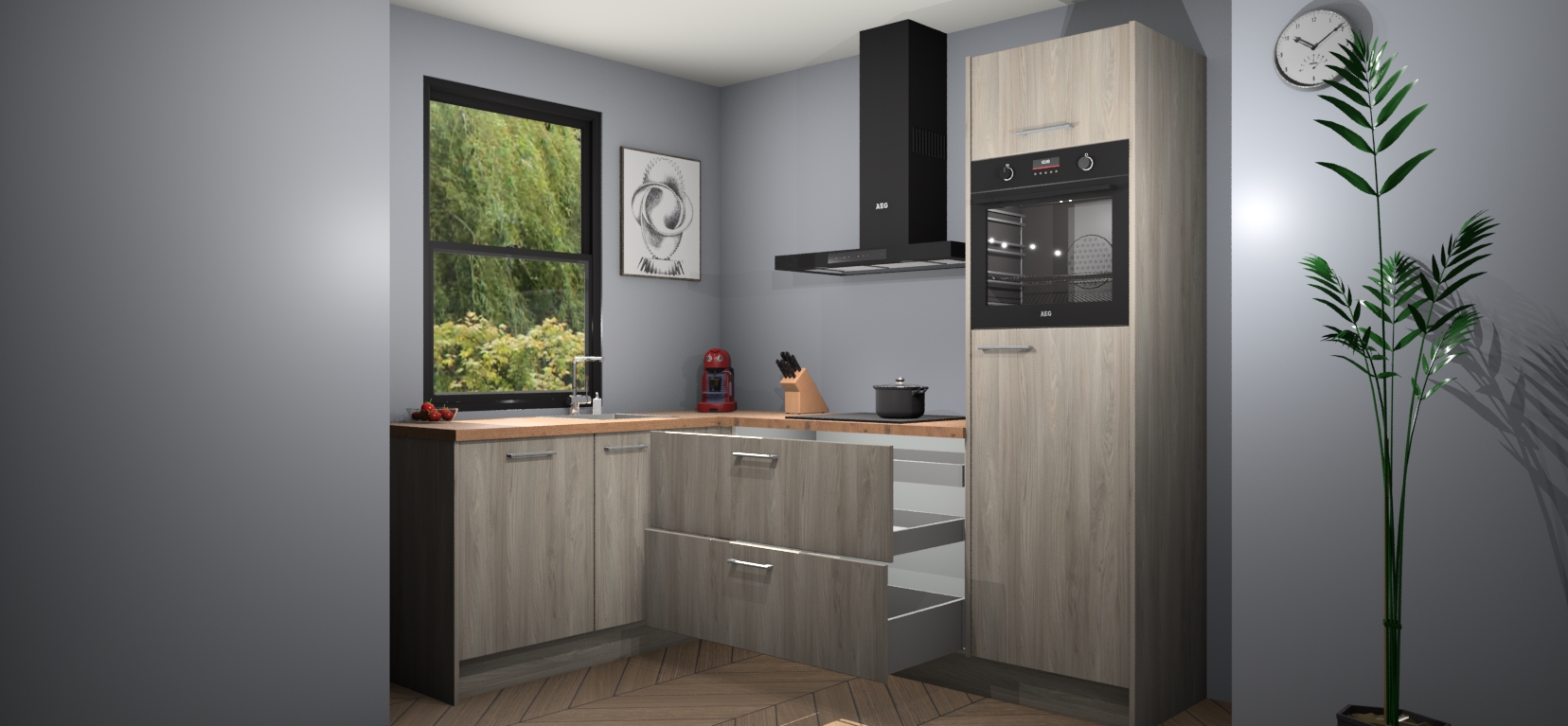 Inclusief plinten, stelpoten en werkblad
