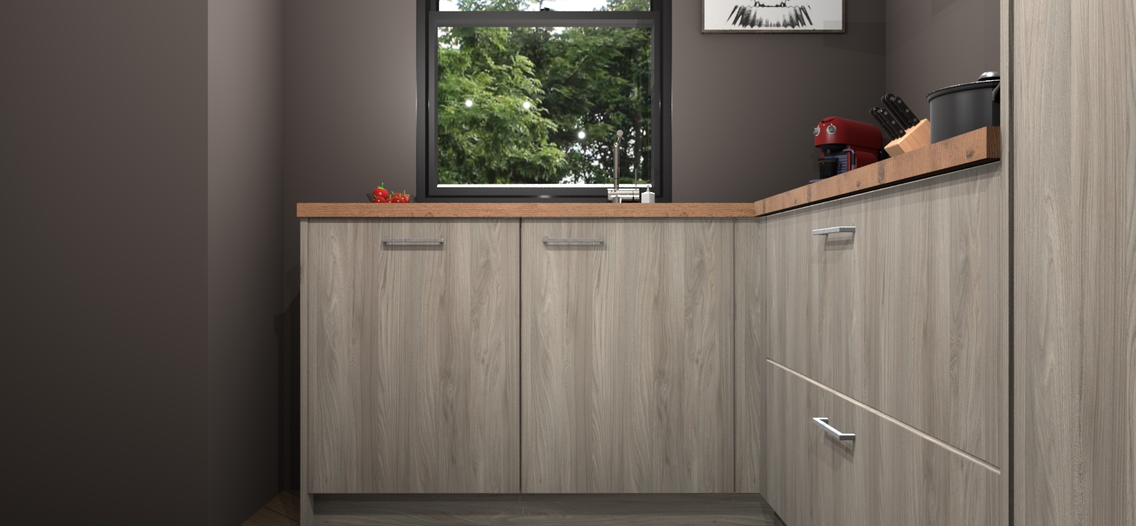 In deze box zijn alle kleuren verzameld van de deuren en werkbladen. Vraag de gratis kleurenbox aan en kijk thuis rustig verder!