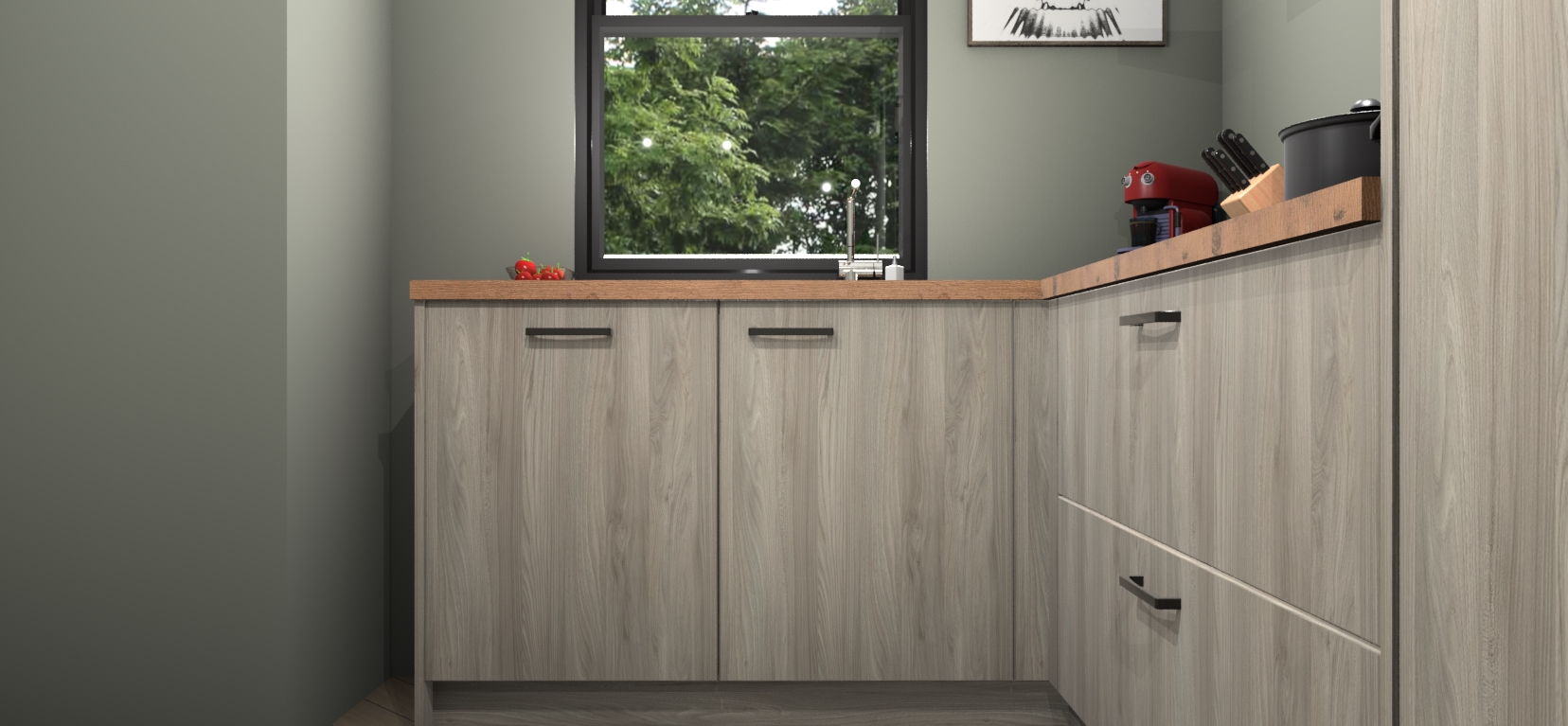 In deze box zijn alle kleuren verzameld van de deuren en werkbladen. Vraag de gratis kleurenbox aan en kijk thuis rustig verder!