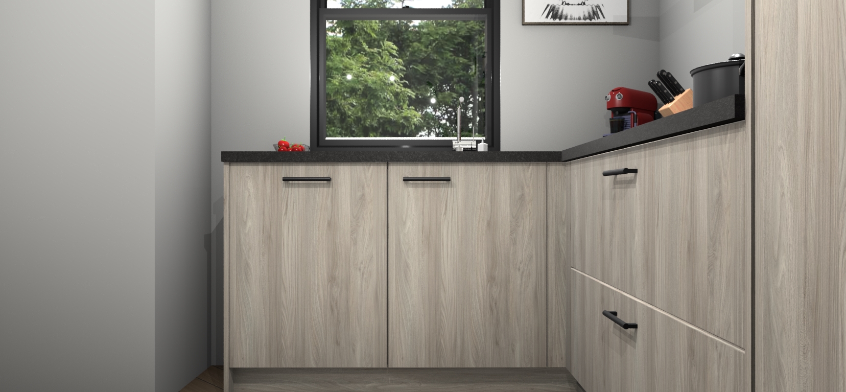 In deze box zijn alle kleuren verzameld van de deuren en werkbladen. Vraag de gratis kleurenbox aan en kijk thuis rustig verder!