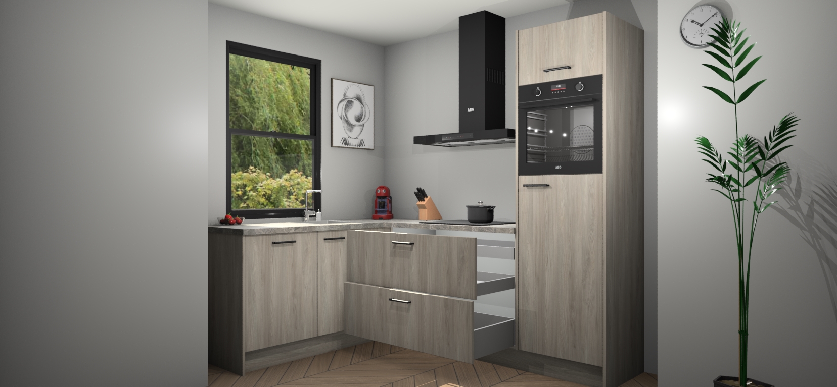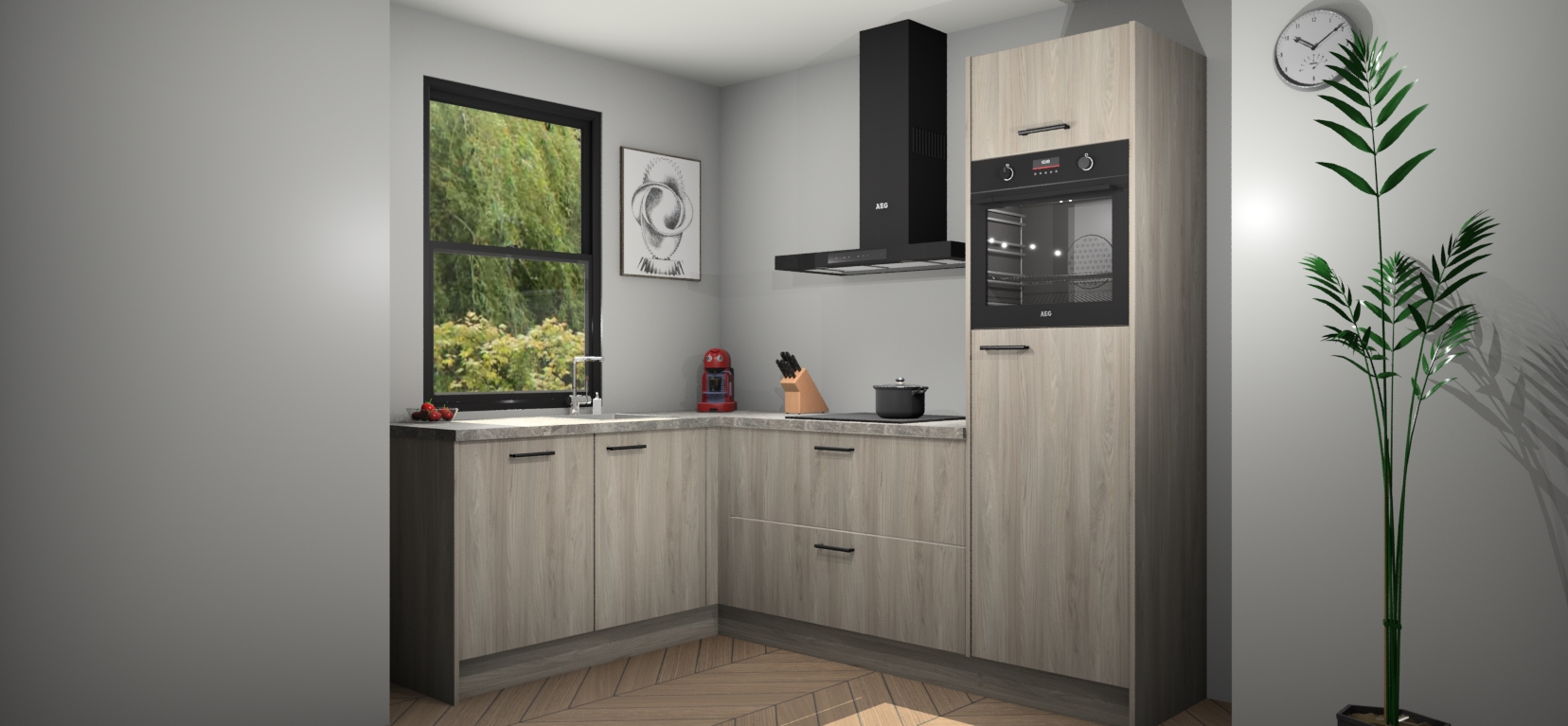 Deze prachtige hoekkeuken heeft alle benodigdheden om uw droomkook- en eetruimte compleet te maken. De Olm kasten bieden een echo van raffinement, terwijl de 5 inbouwapparaten genoeg opties bieden voor het bereiden van heerlijke maaltijden. De oven, inductiekookplaat, afzuigkap, vaatwasser en koelkast zorgen ervoor dat u tijd in de keuken zo efficiënt mogelijk verloopt, terwijl ze ook dat extra vleugje luxe bieden.