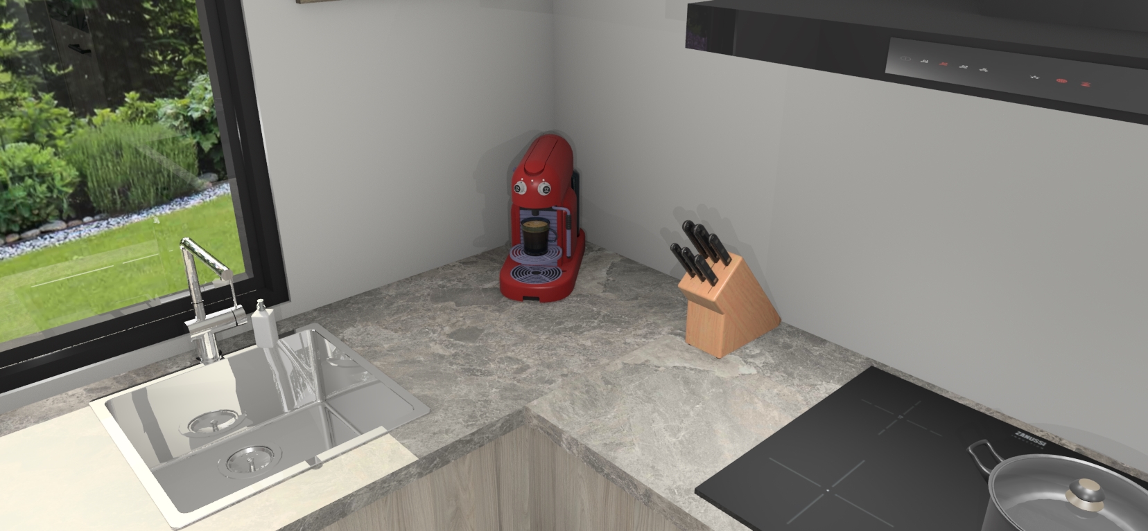 - Bij een hoekwerkblad zijn de hoeken in gevreesd en op maat gemaakt