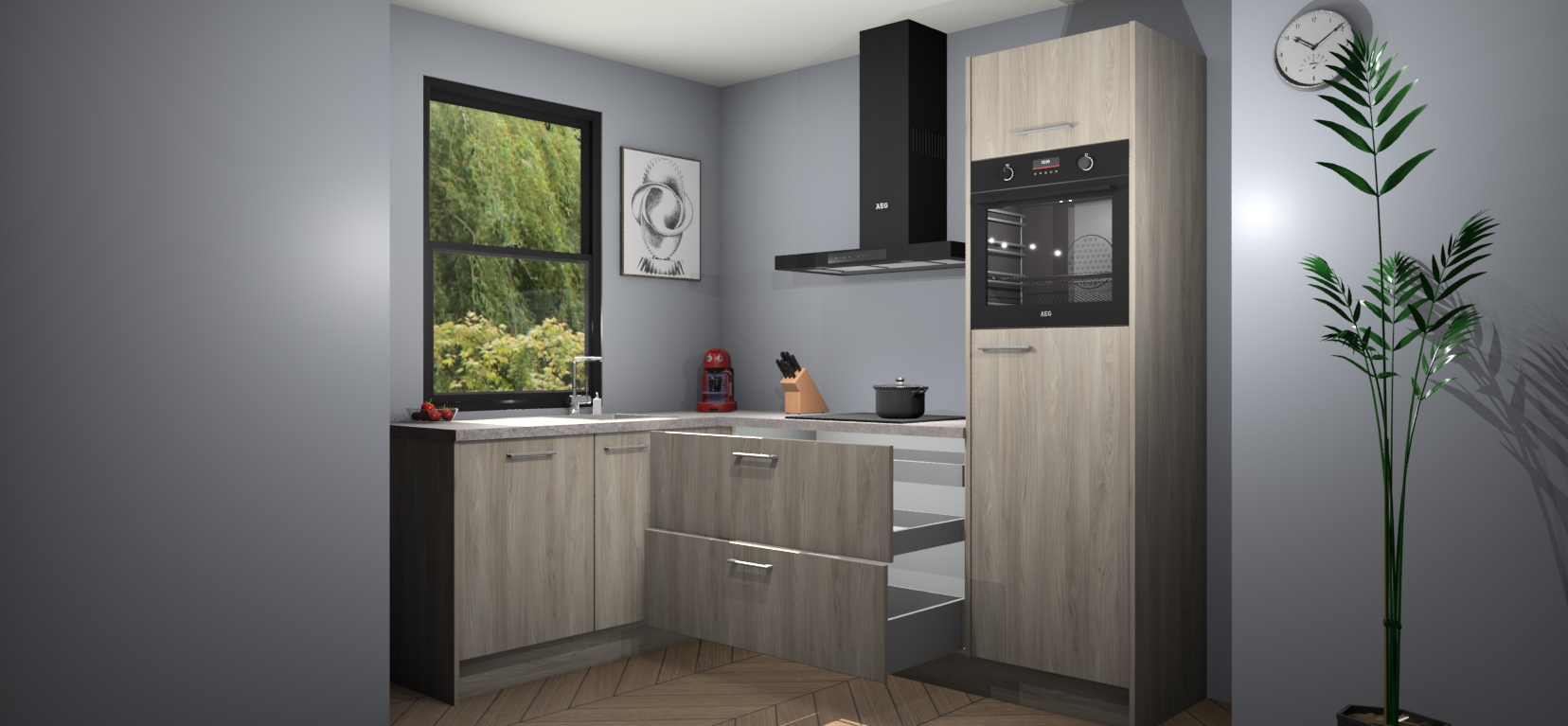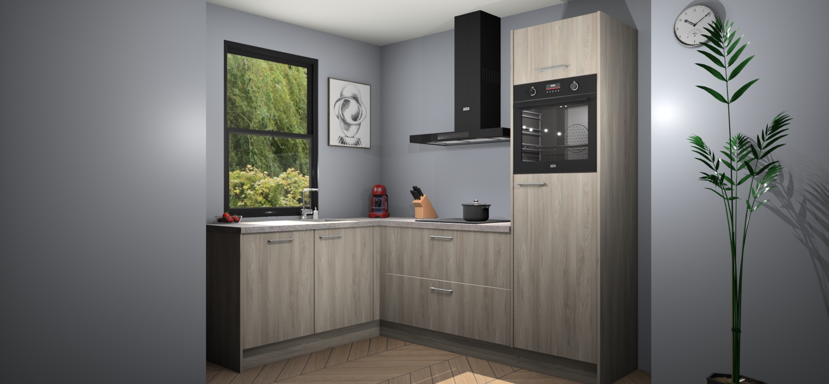 Deze prachtige hoekkeuken heeft alle benodigdheden om uw droomkook- en eetruimte compleet te maken. De Olm kasten bieden een echo van raffinement, terwijl de 5 inbouwapparaten genoeg opties bieden voor het bereiden van heerlijke maaltijden. De oven, inductiekookplaat, afzuigkap, vaatwasser en koelkast zorgen ervoor dat u tijd in de keuken zo efficiënt mogelijk verloopt, terwijl ze ook dat extra vleugje luxe bieden.