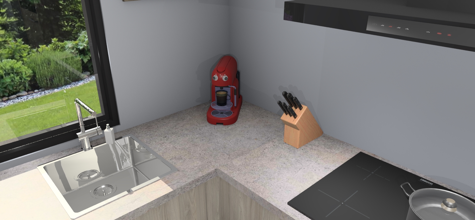 - Bij een hoekwerkblad zijn de hoeken in gevreesd en op maat gemaakt