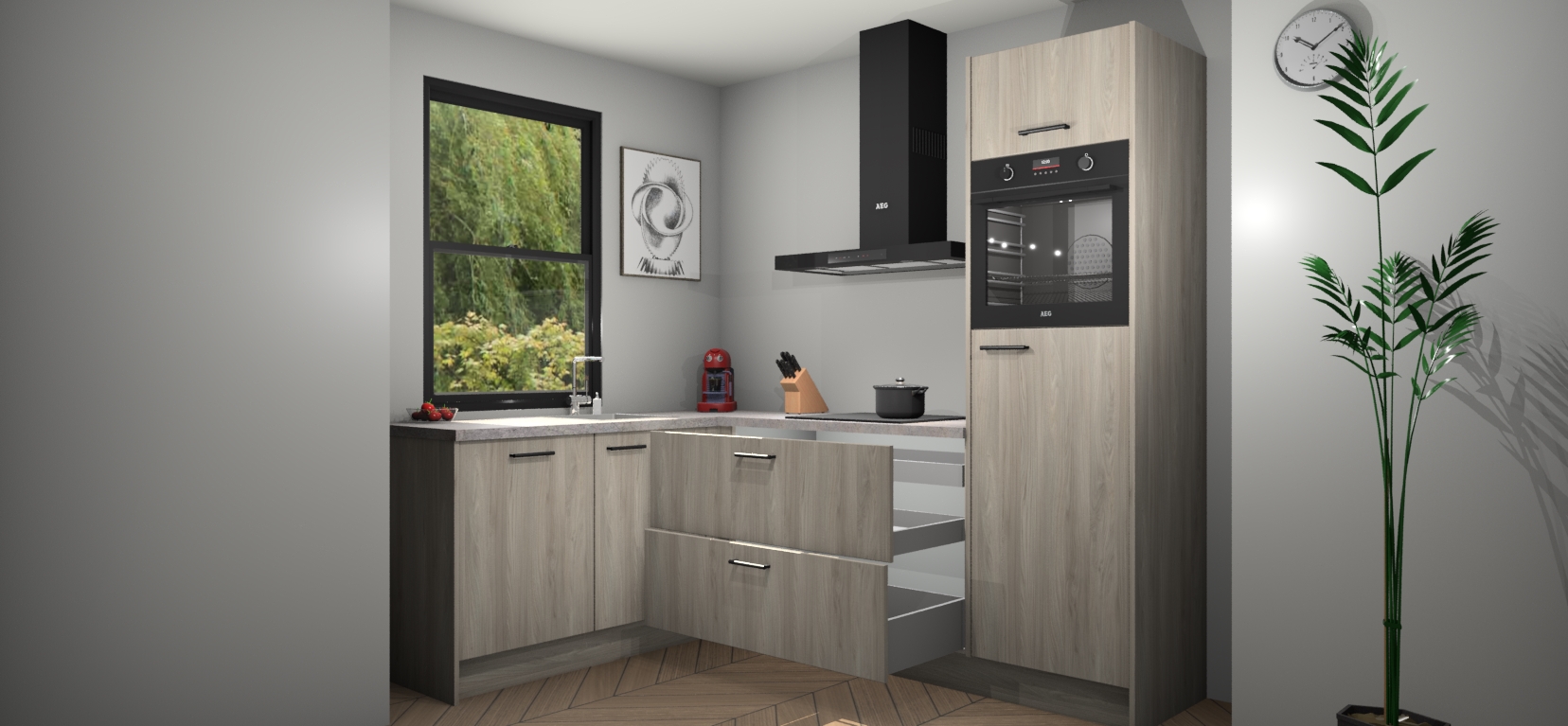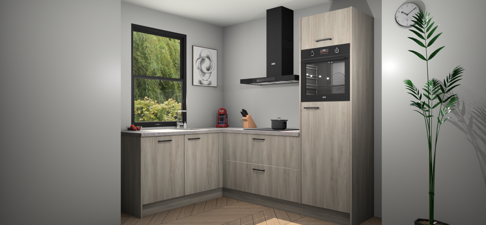 Deze prachtige hoekkeuken heeft alle benodigdheden om uw droomkook- en eetruimte compleet te maken. De Olm kasten bieden een echo van raffinement, terwijl de 5 inbouwapparaten genoeg opties bieden voor het bereiden van heerlijke maaltijden. De oven, inductiekookplaat, afzuigkap, vaatwasser en koelkast zorgen ervoor dat u tijd in de keuken zo efficiënt mogelijk verloopt, terwijl ze ook dat extra vleugje luxe bieden.