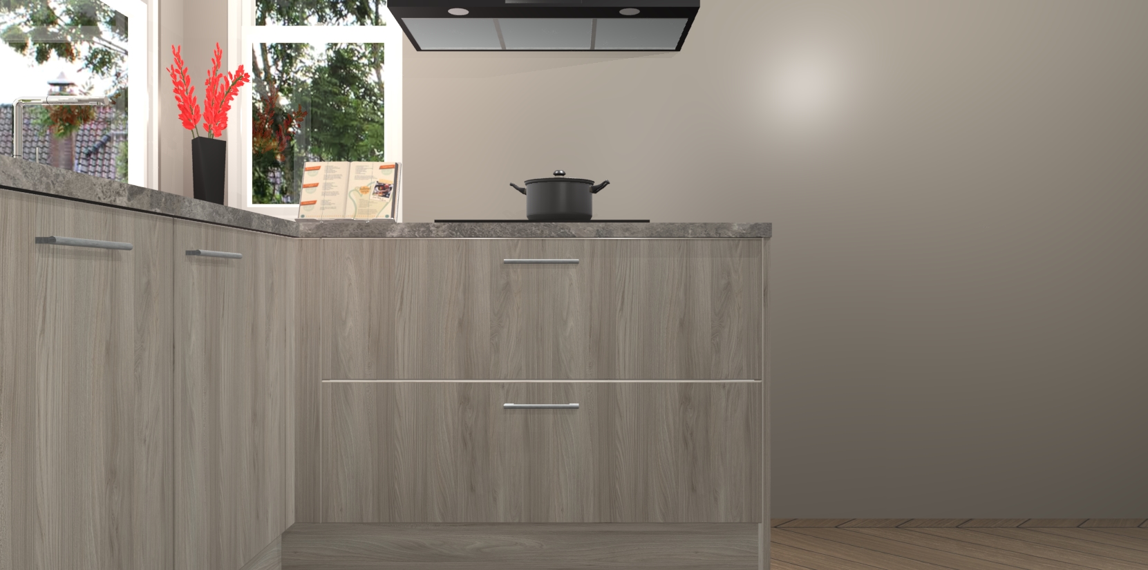 In deze box zijn alle kleuren verzameld van de deuren en werkbladen. Vraag de gratis kleurenbox aan en kijk thuis rustig verder!