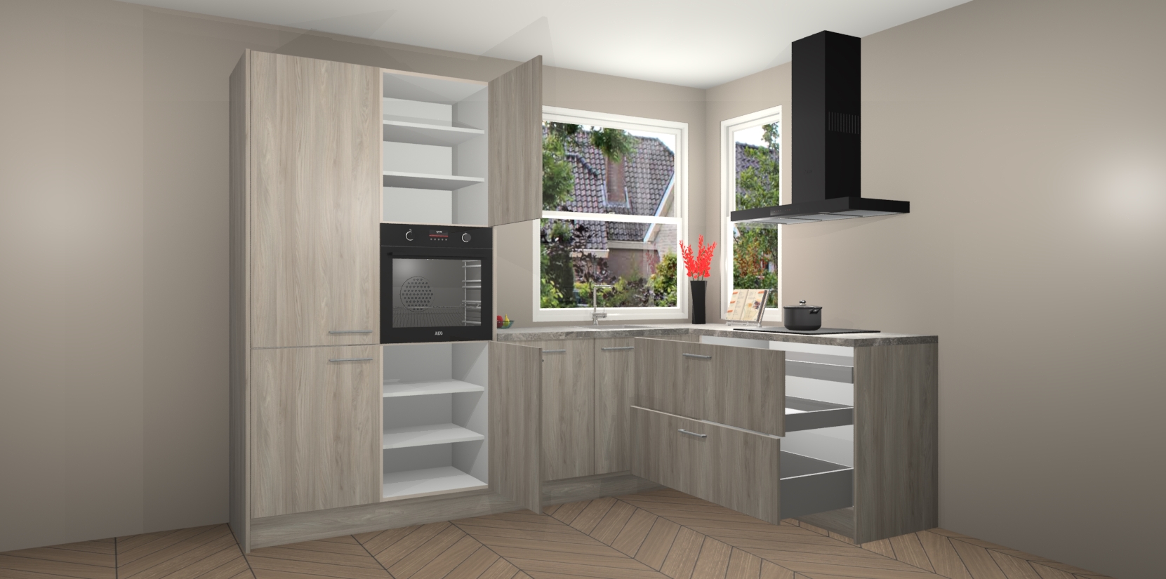 En alsof dat nog niet genoeg is? De Olm keuken Kotor biedt ook een vaste lage prijs en een snelle levering van 7 weken. Dus of u nu op zoek bent naar een gezellige hoekkeuken of naar iets meer substantieels voor speciale gelegenheden thuis - dit zal zeker in de smaak vallen! Zeg vaarwel tegen die dagen van zorgen maken over te veel uitgeven aan renovaties; met de Olm keuken Kotor weet u precies wat u krijgt voordat het zelfs uw deur bereikt! Wacht niet langer - haal vandaag nog uw luxe droomkeuken in huis!