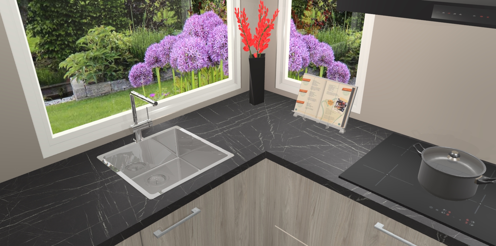 - Bij een hoekwerkblad zijn de hoeken in gevreesd en op maat gemaakt