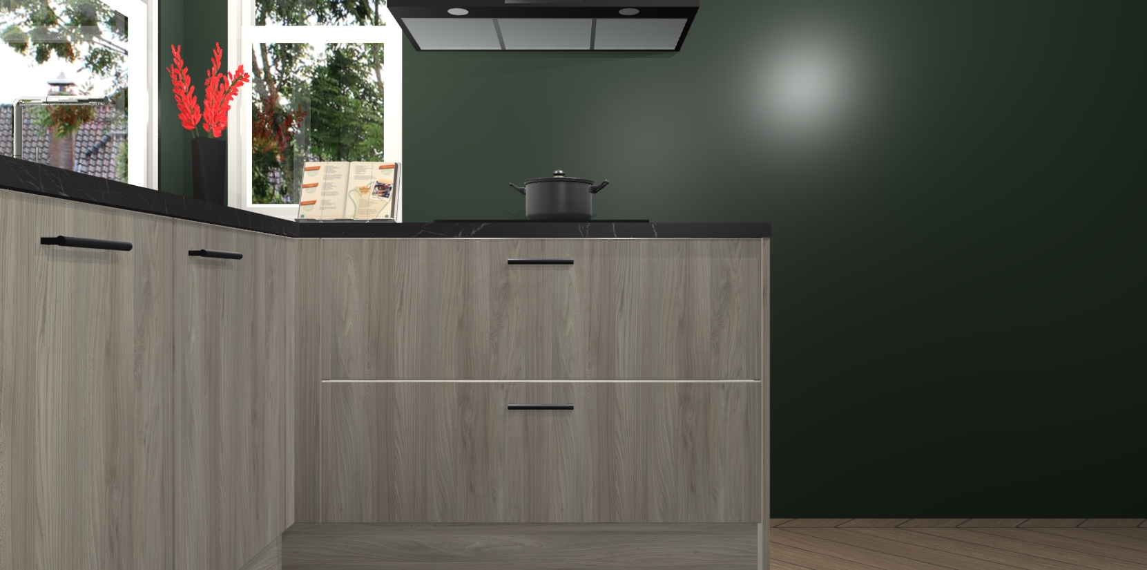 In deze box zijn alle kleuren verzameld van de deuren en werkbladen. Vraag de gratis kleurenbox aan en kijk thuis rustig verder!