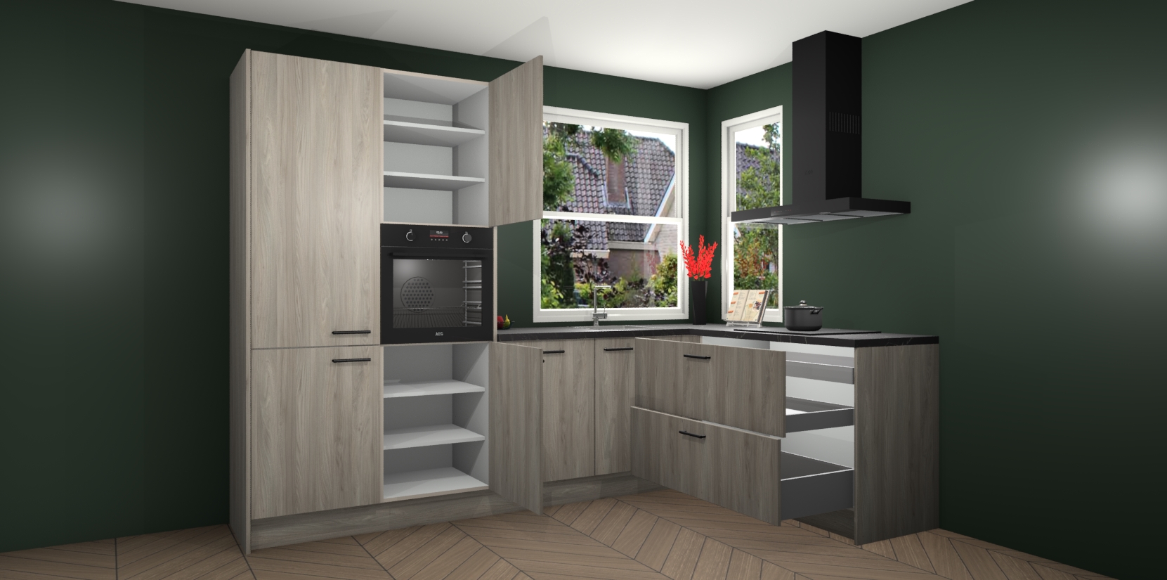 En alsof dat nog niet genoeg is? De Olm keuken Kotor biedt ook een vaste lage prijs en een snelle levering van 7 weken. Dus of u nu op zoek bent naar een gezellige hoekkeuken of naar iets meer substantieels voor speciale gelegenheden thuis - dit zal zeker in de smaak vallen! Zeg vaarwel tegen die dagen van zorgen maken over te veel uitgeven aan renovaties; met de Olm keuken Kotor weet u precies wat u krijgt voordat het zelfs uw deur bereikt! Wacht niet langer - haal vandaag nog uw luxe droomkeuken in huis!