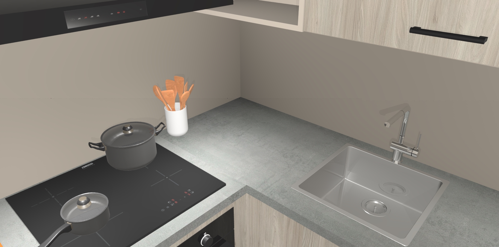 - Uitsparing van kookplaat, spoelbak en kraan dient u zelf te verzorgen.