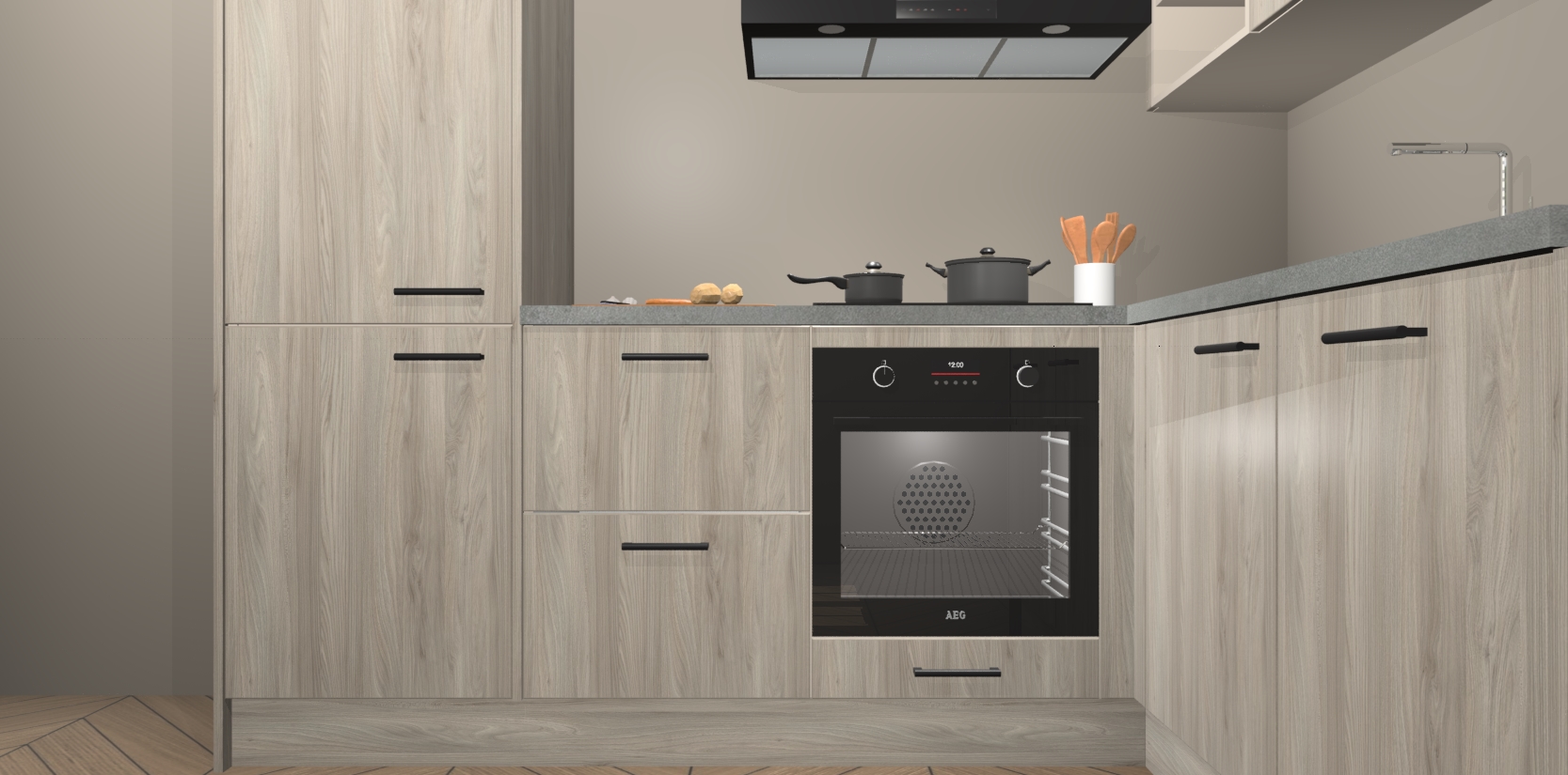 Dit model biedt u voldoende opbergruimte en vijf ingebouwde apparaten: een oven, inductiekookplaat, afzuigkap, vaatwasser en koelkast. Deze apparaten kunnen gemakkelijk worden geüpgrade naar AEG nadat u besteld heeft. De verschillende laden en kastjes bevatten softclose-deuren waardoor ze gezellig dichtvallen met een geruststellend helemaal geruisloos geluid. En dat is nog niet alles! We garanderen ook dat de prijs altijd laag blijft - dus haal nu uw Olm keuken Krakau terwijl het kan.
