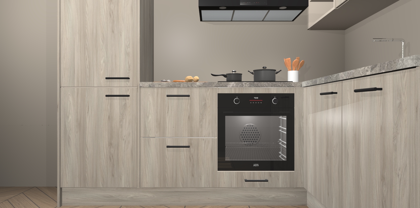 Dit model biedt u voldoende opbergruimte en vijf ingebouwde apparaten: een oven, inductiekookplaat, afzuigkap, vaatwasser en koelkast. Deze apparaten kunnen gemakkelijk worden geüpgrade naar AEG nadat u besteld heeft. De verschillende laden en kastjes bevatten softclose-deuren waardoor ze gezellig dichtvallen met een geruststellend helemaal geruisloos geluid. En dat is nog niet alles! We garanderen ook dat de prijs altijd laag blijft - dus haal nu uw Olm keuken Krakau terwijl het kan.